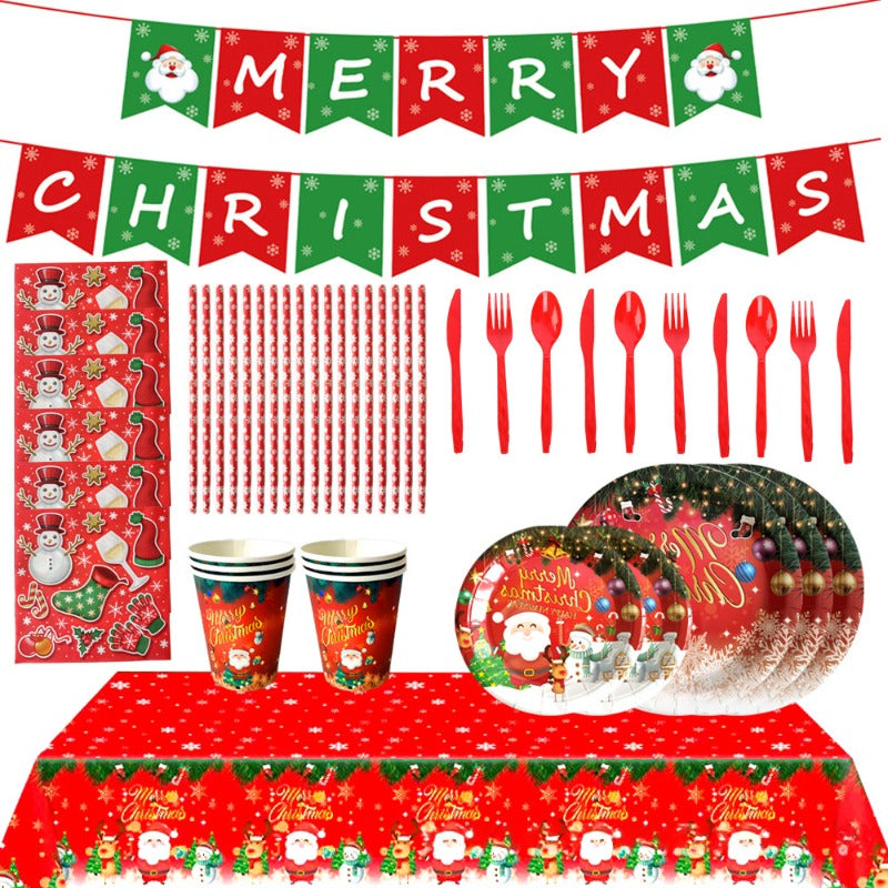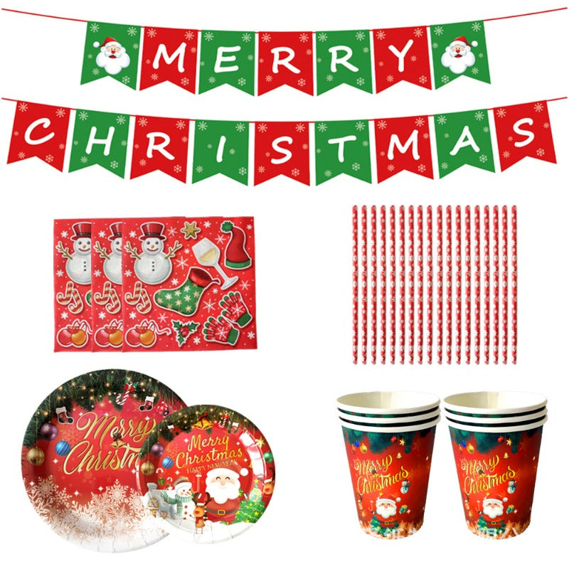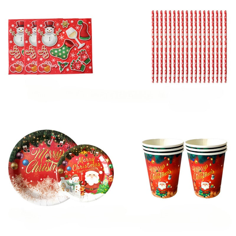 Новогодние бумажные стаканы, тарелки, полотенца, украшения для вечеринки, сценические принадлежности