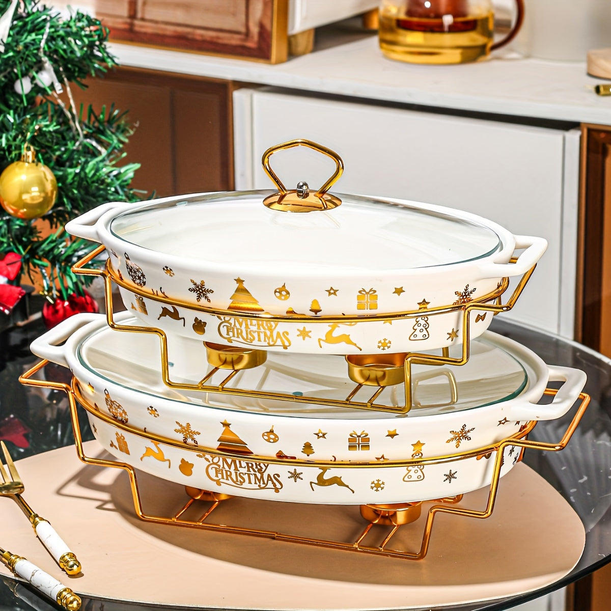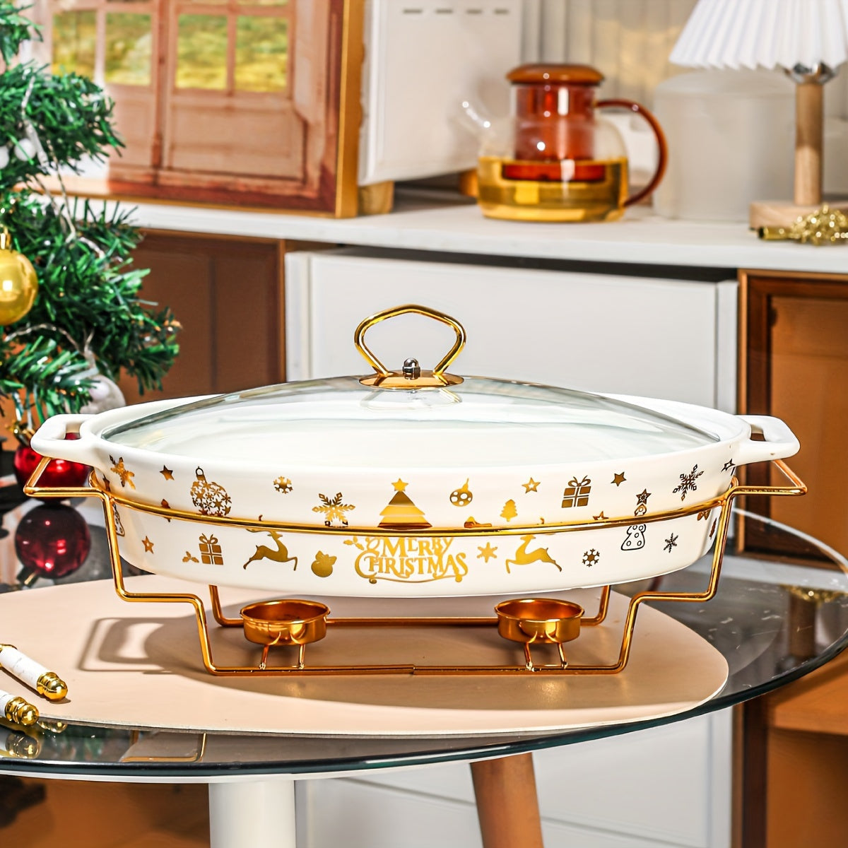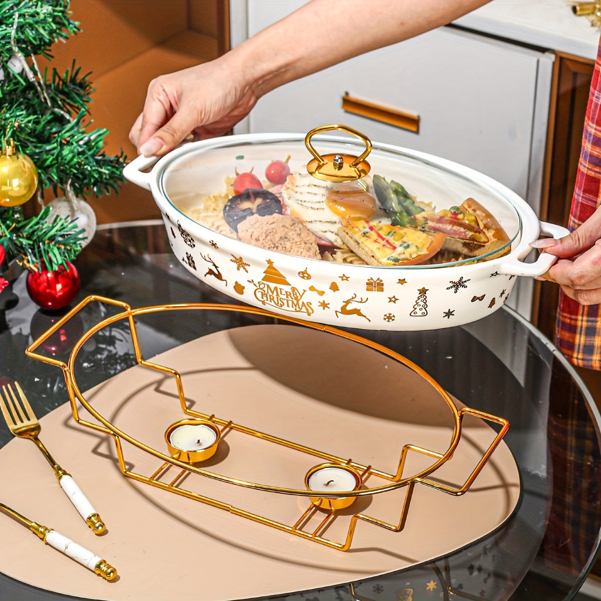 Керамическая рождественская кастрюля с крышкой и железной подставкой - Идеально подходит для приготовления супов, рагу и запеканок на кухне