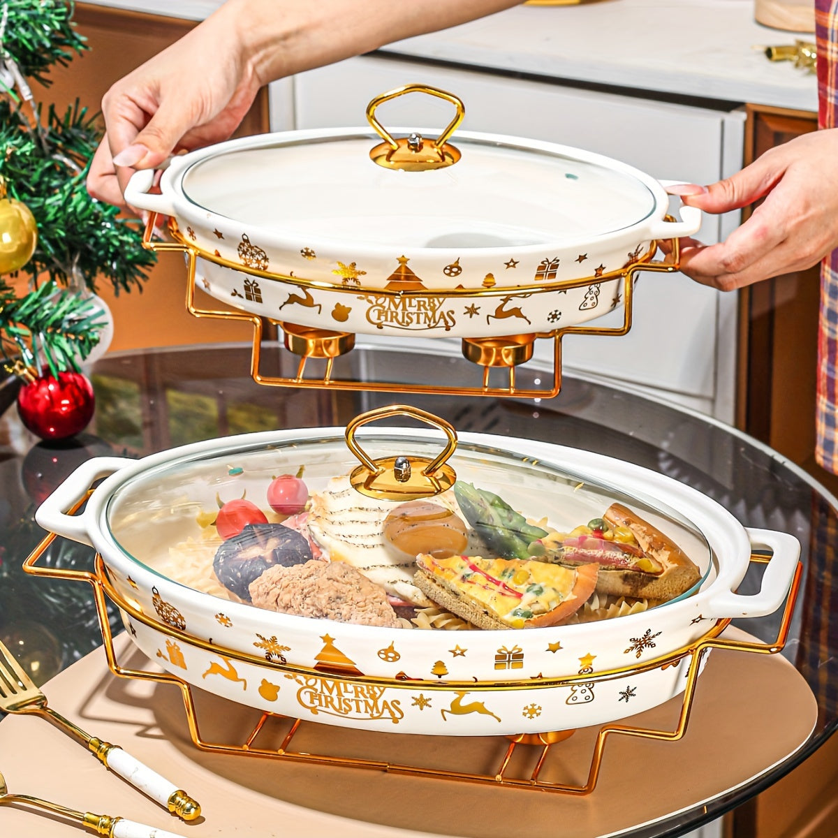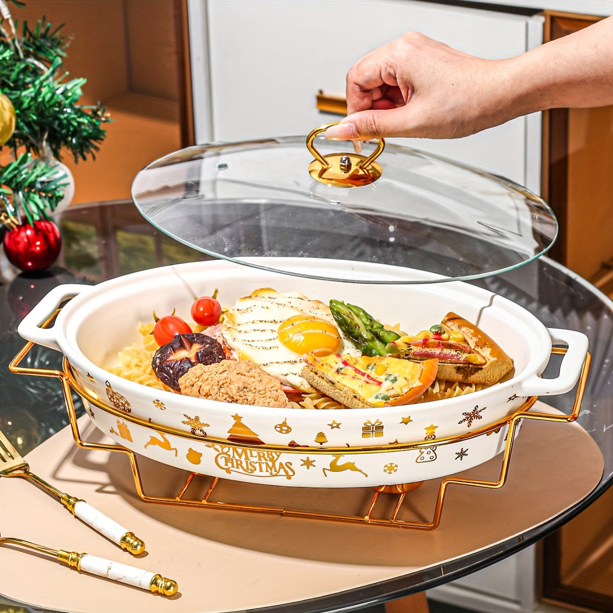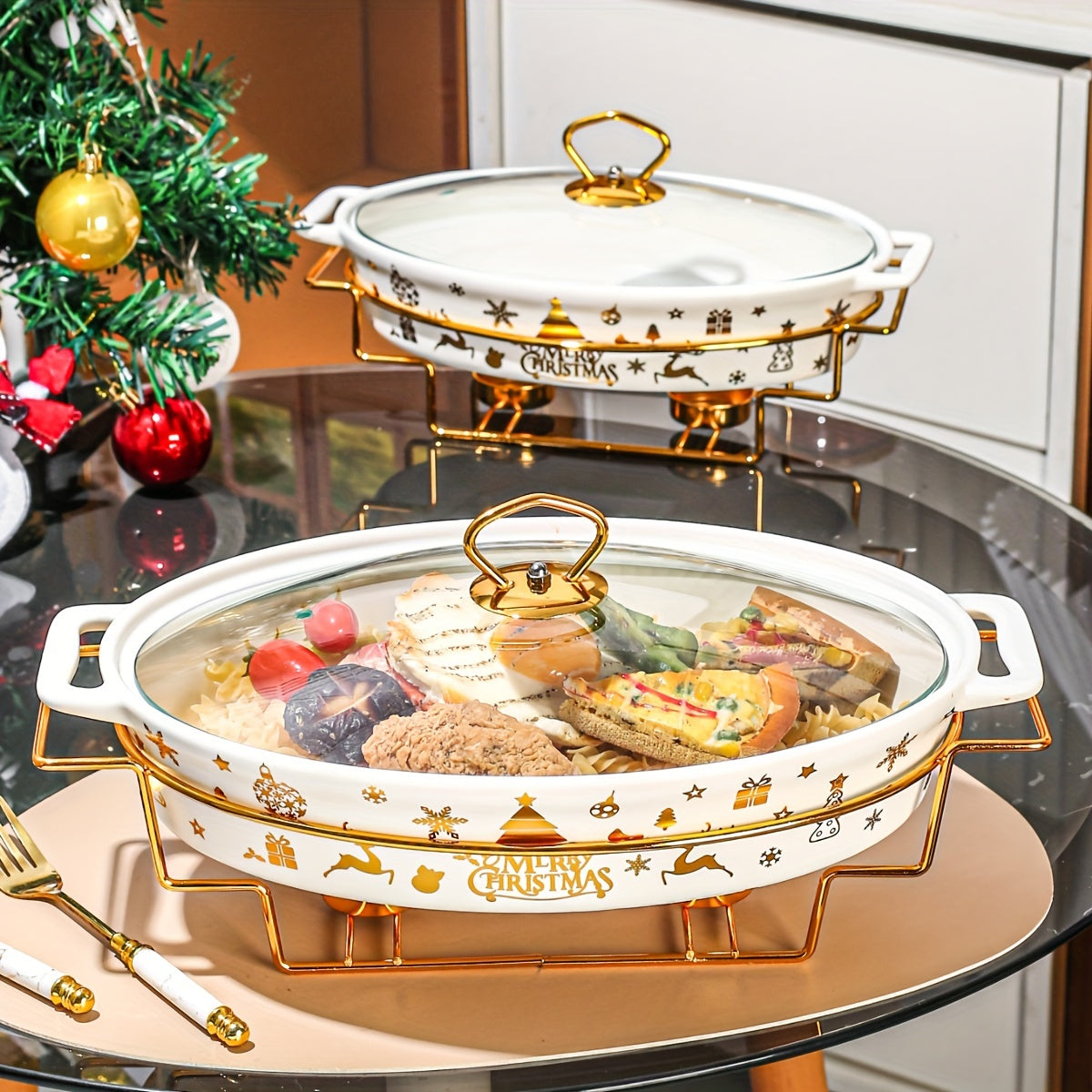 Керамическая рождественская кастрюля с крышкой и железной подставкой - Идеально подходит для приготовления супов, рагу и запеканок на кухне