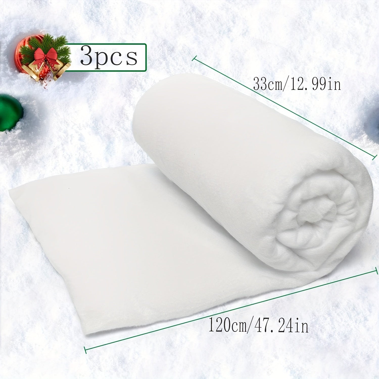 "Рождественский снежный плед-рулон (1/3 кусок, 33*120 см) для праздничного декора - идеально подходит для деревенских композиций, под рождественские елки - толстое, мягкое белое пушистое искусственное снежное покрытие для зимнего и праздничного декора"