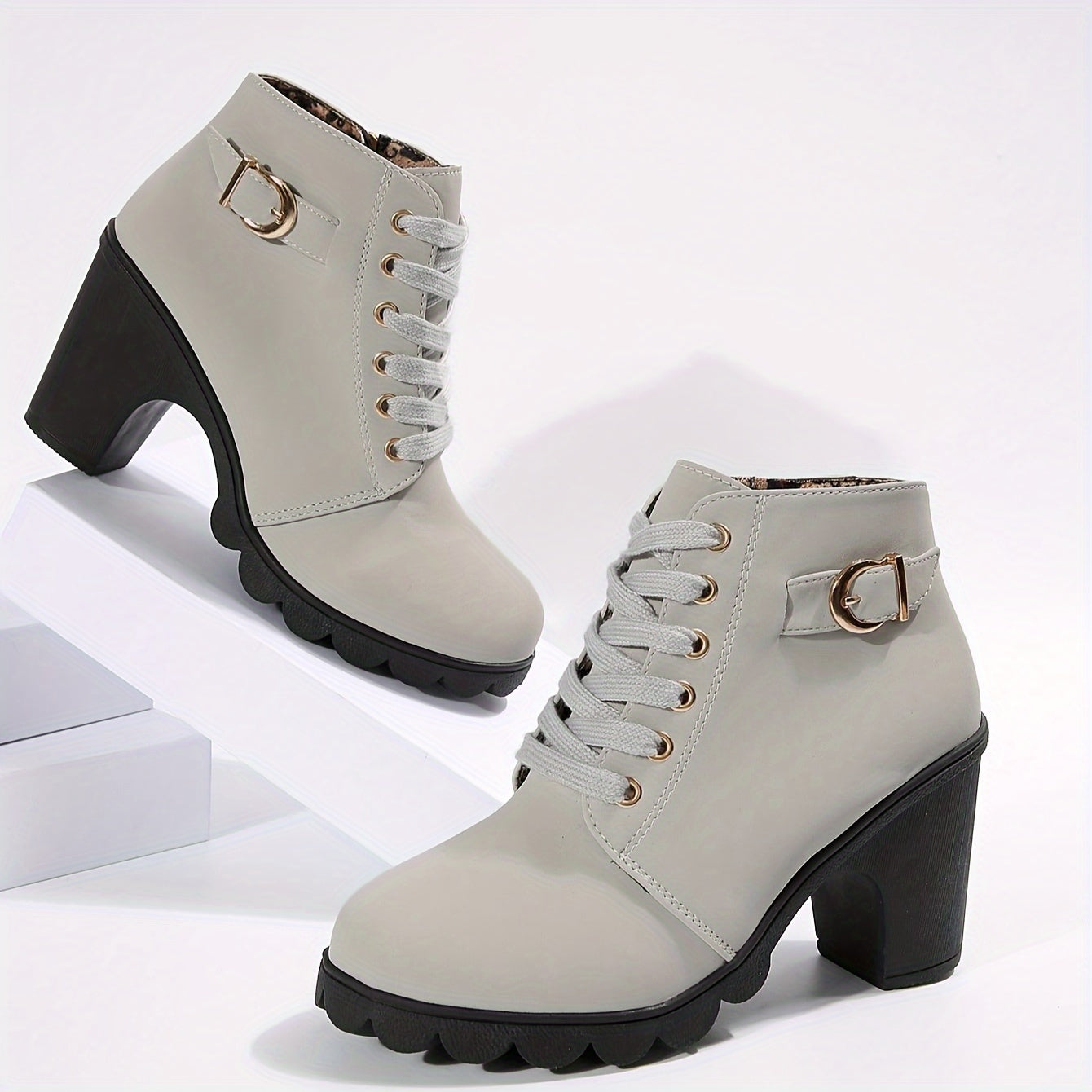 Женские ботинки на толстом каблуке с шнуровкой и боковой молнией.