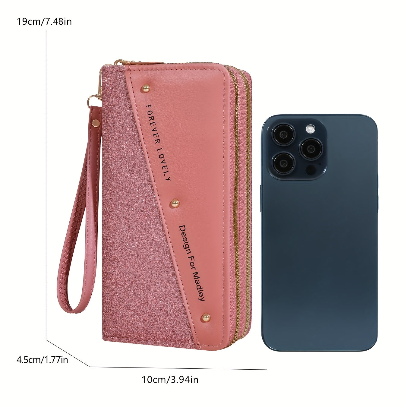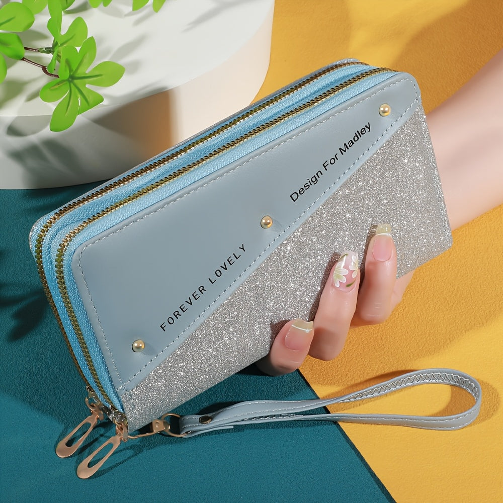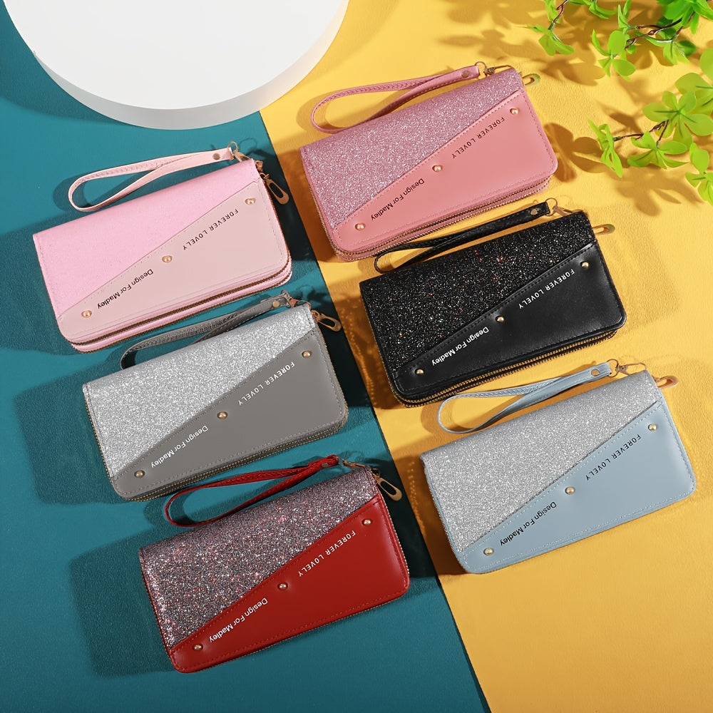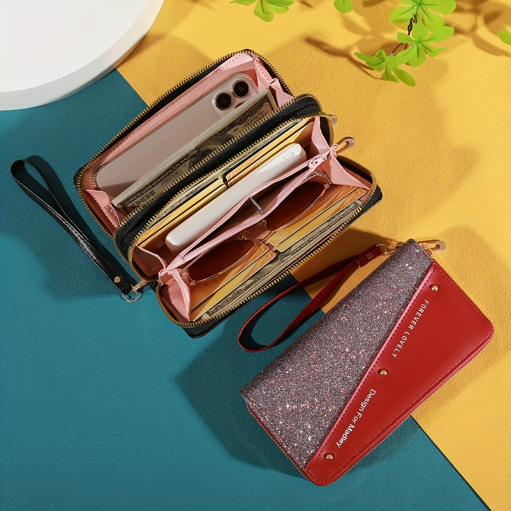 Длинный кошелек с цветными блоками, клатч с пайетками и слотами для карт для женщин
