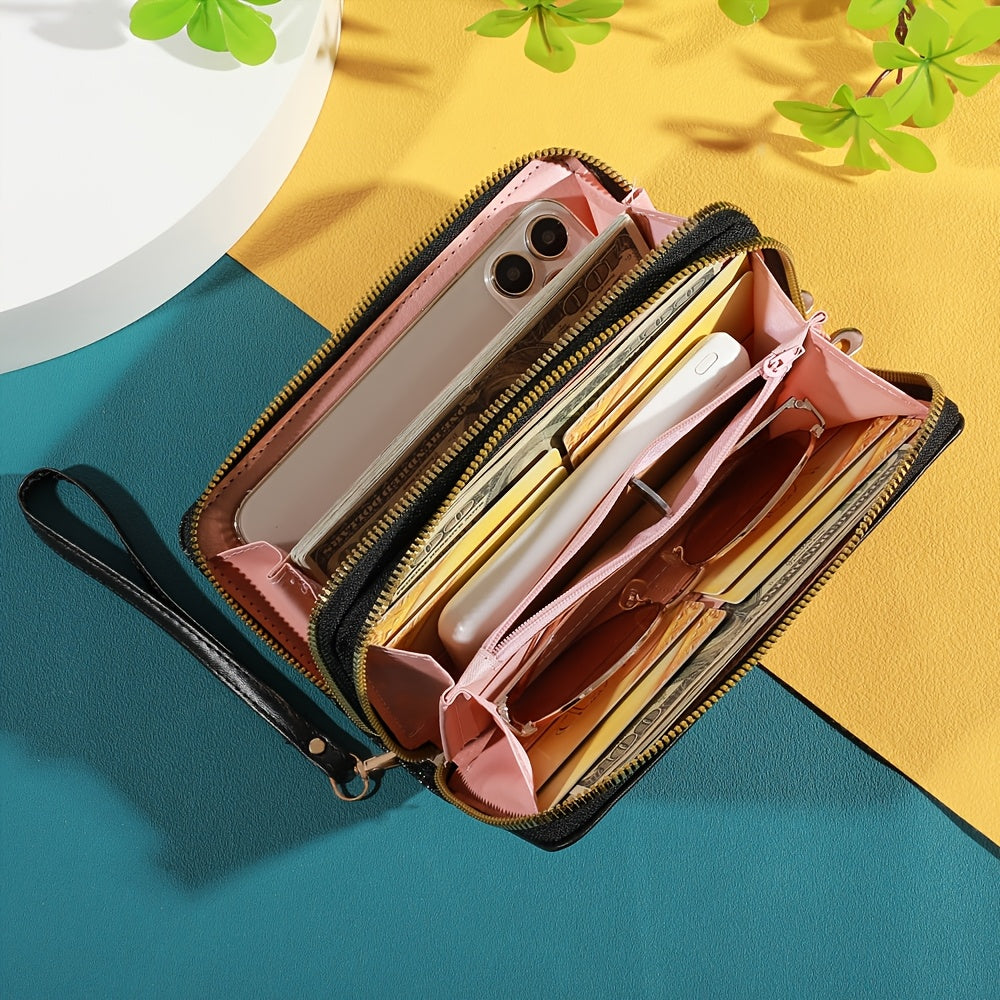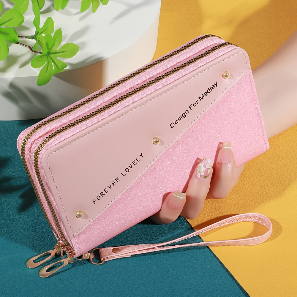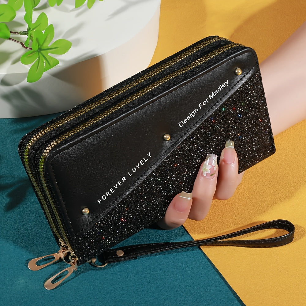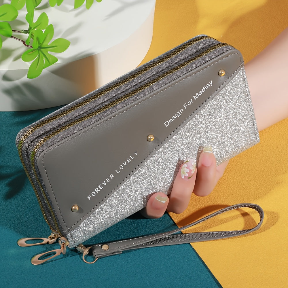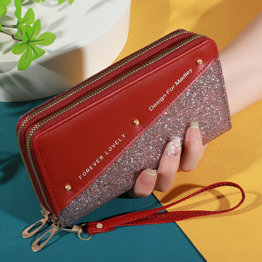 Длинный кошелек с цветными блоками, клатч с пайетками и слотами для карт для женщин