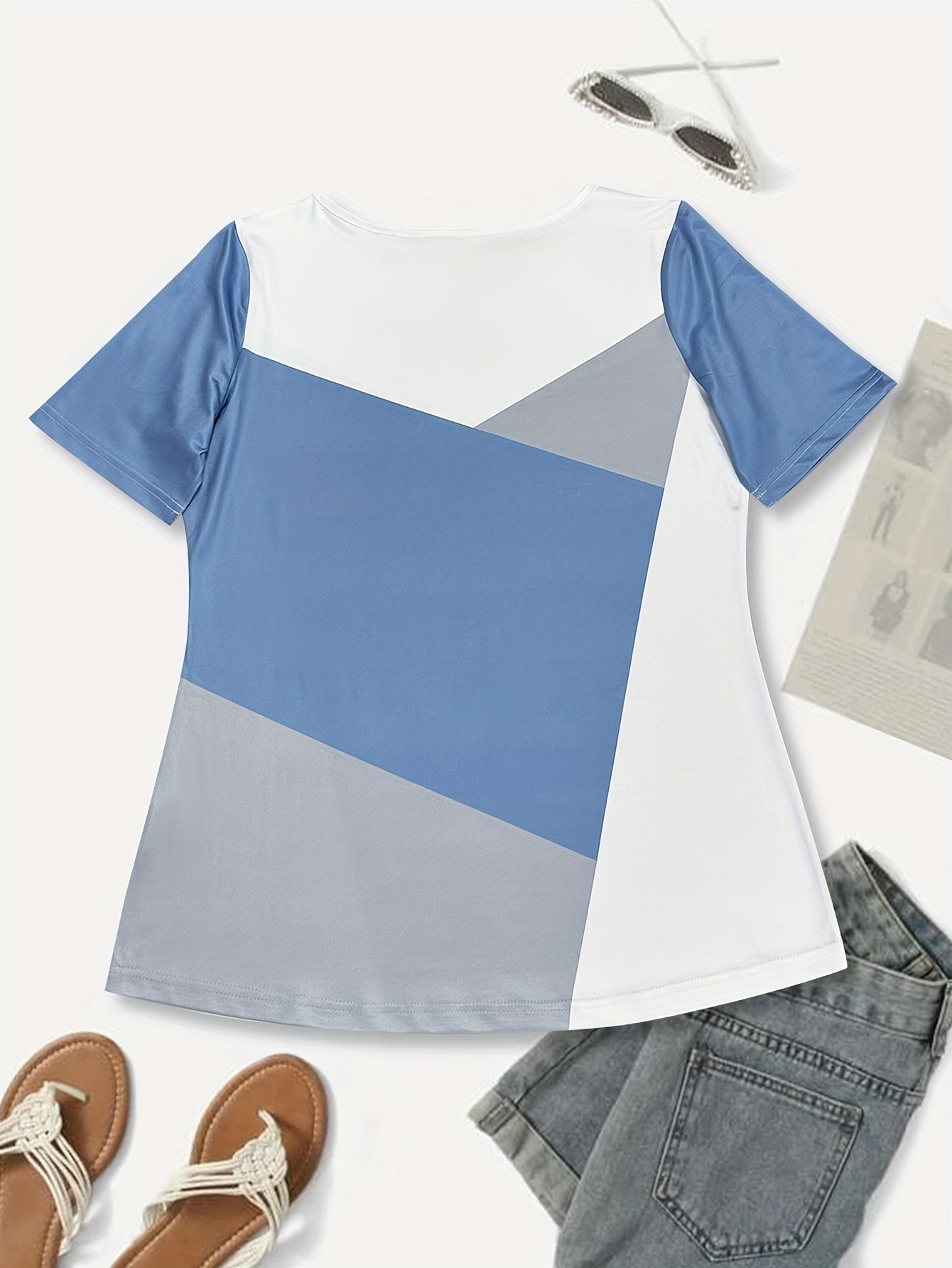 Футболка с вырезом в форме буквы V и цветными блоками для женщин, идеально подходящая для весны и лета.
