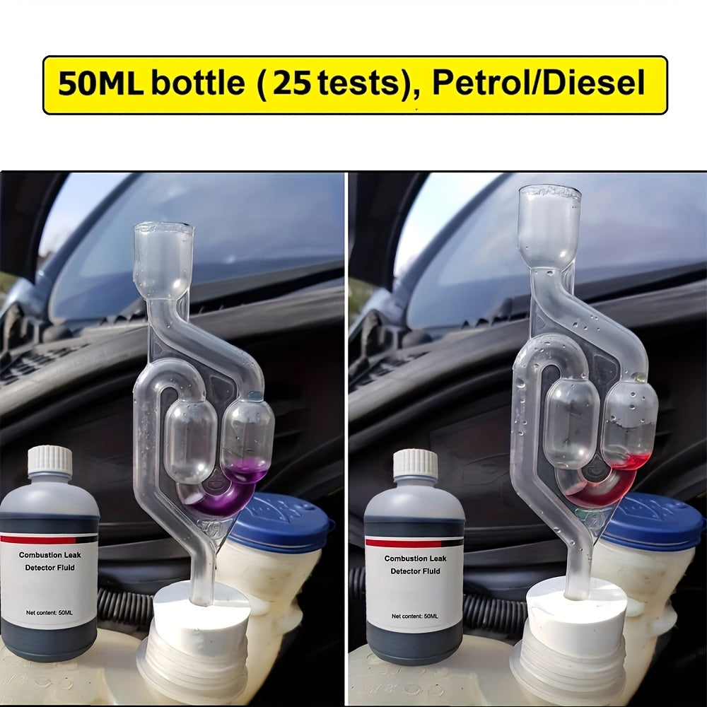 Комплект для проверки утечек сгорания для бензина и дизеля, жидкость 50 мл, 25 тестов