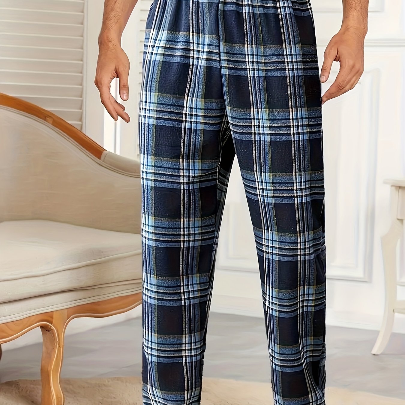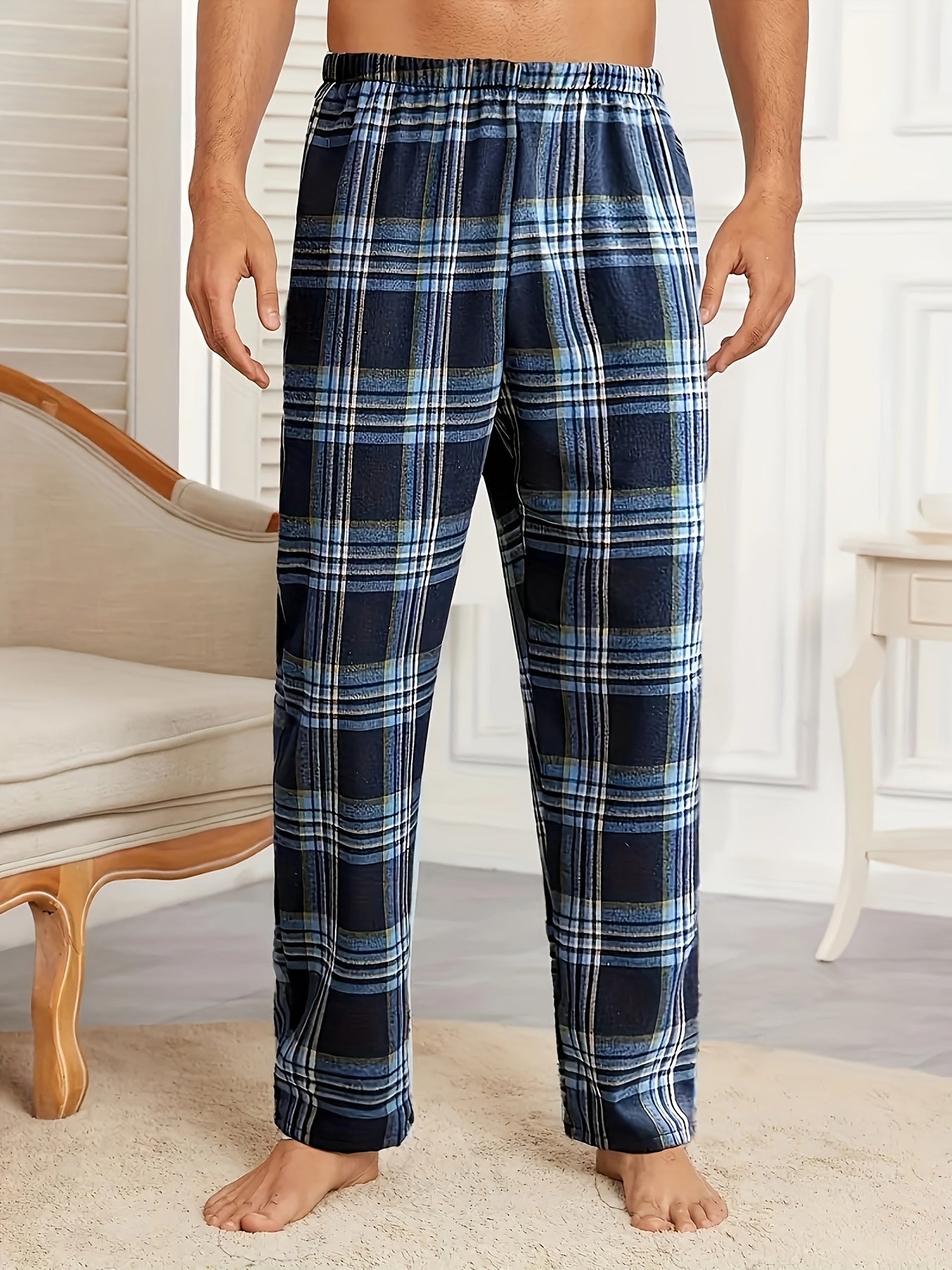 Мужские брюки для сна в клетку с эластичным поясом, карманами, легкие, мягкие, для всех сезонов