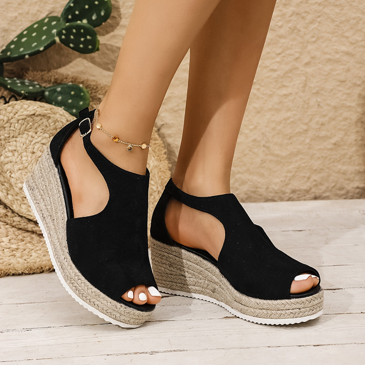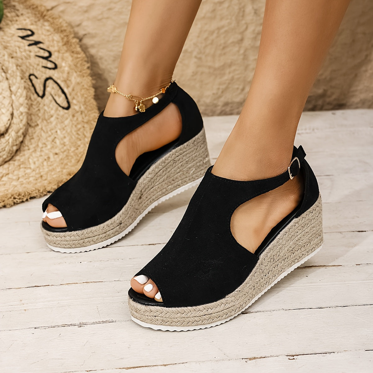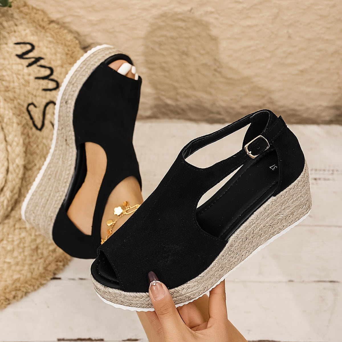 Черные летние сандалии для женщин с открытым носком, платформой, каблуком, пряжкой, повседневные, стильные