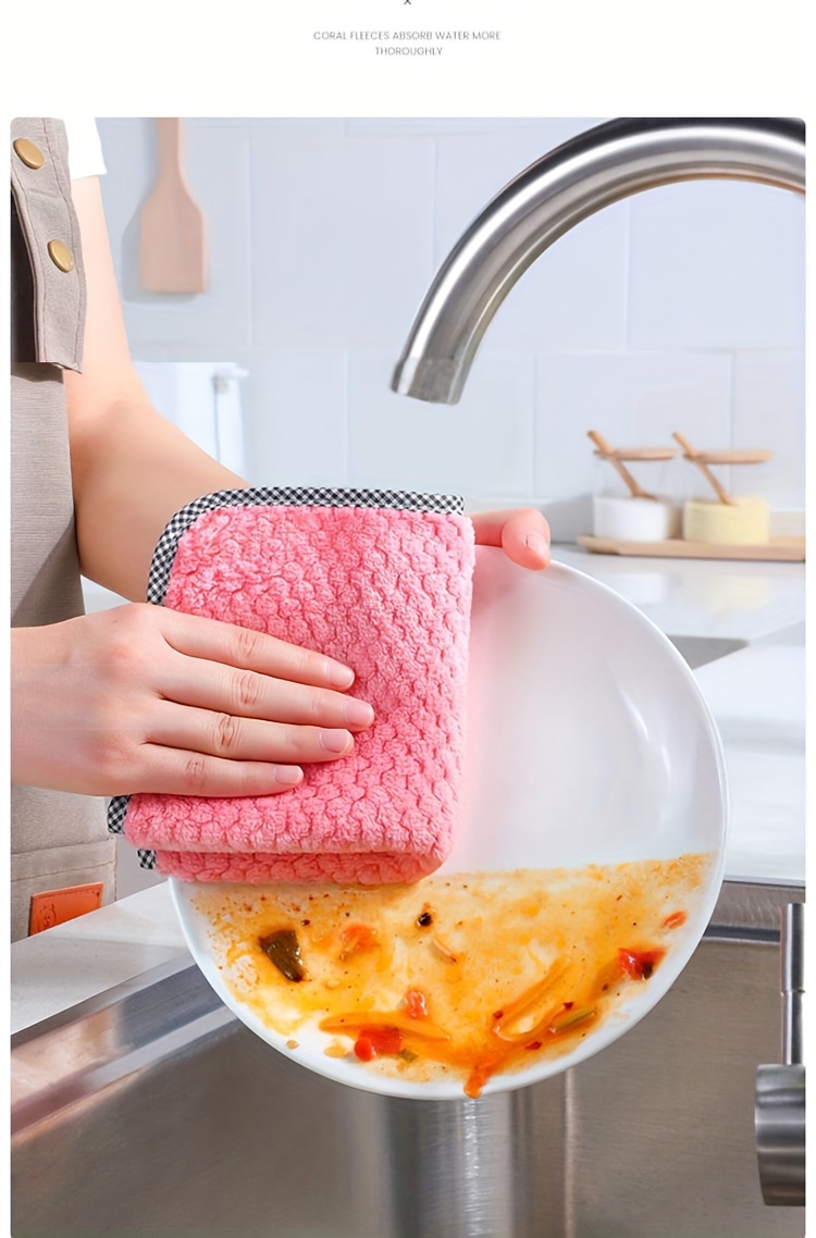 Коммерческие кухонные тряпки из кораллового бархата, мягкие впитывающие салфетки для уборки