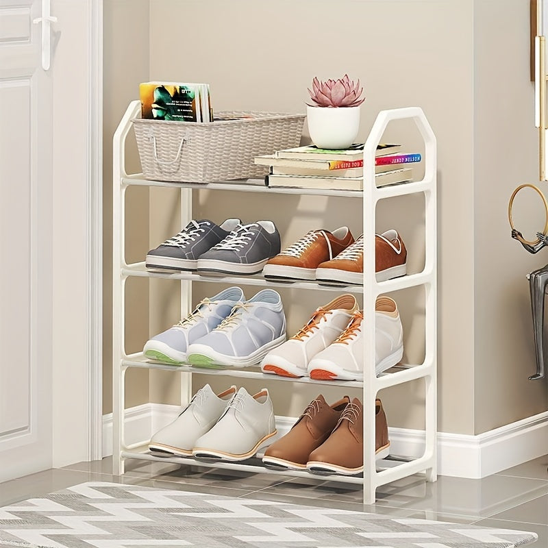 Компактная 4-уровневая полка для обуви, повседневная пластиковая складная полка для обуви для прихожей, общежития, спальни, не требует сборки, прочный каркас из стальных труб.