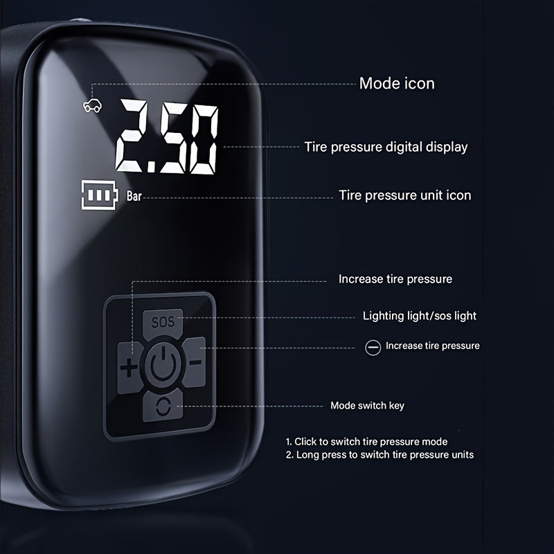 Компактный беспроводной воздушный компрессор для автомобильных шин и надувных мячей
