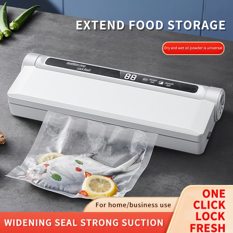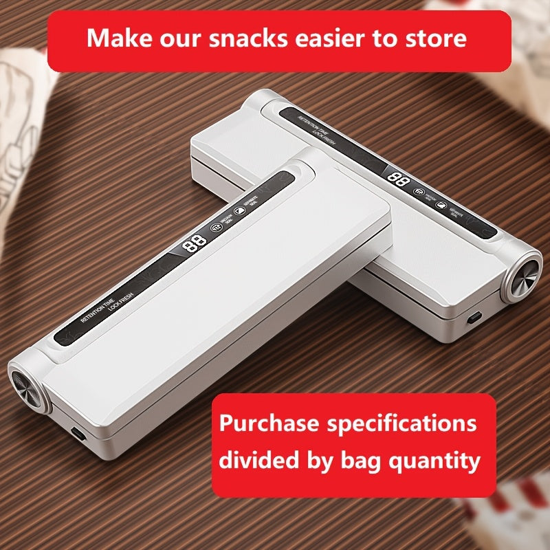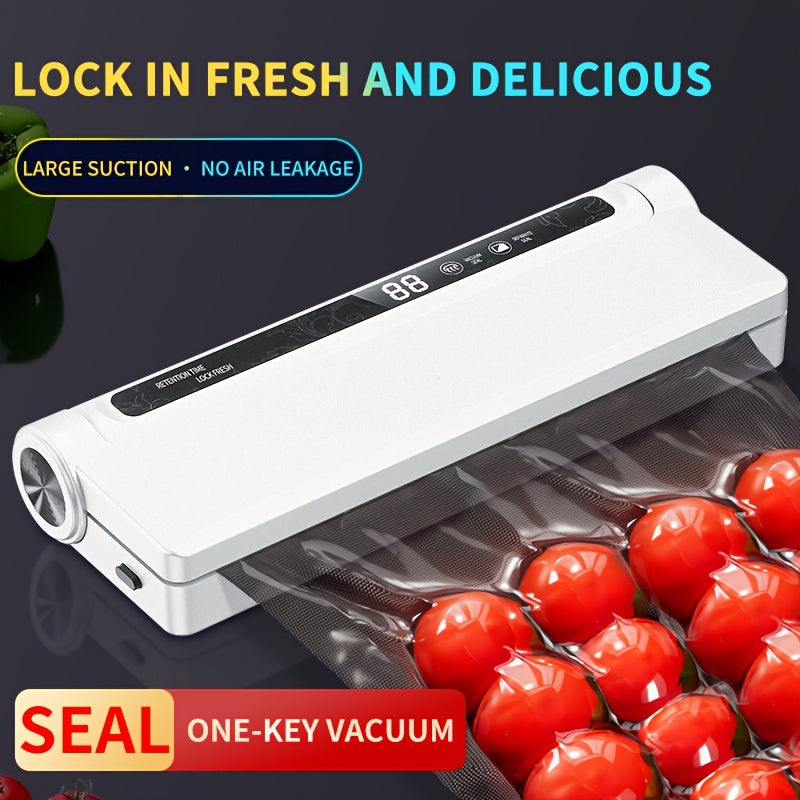 Компактный вакуумный упаковщик с европейской вилкой, белый ABS, увеличивает свежесть продуктов с помощью многоразовых вакуумных пакетов