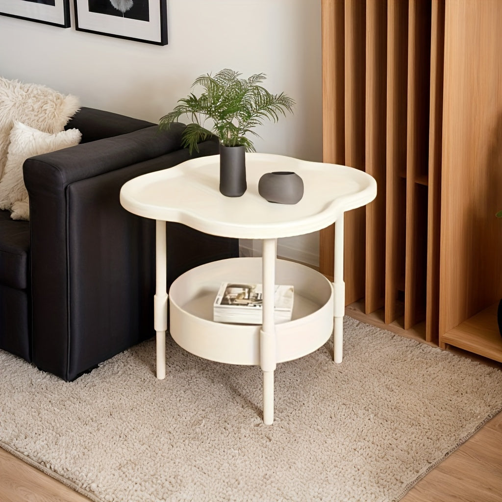 Современный двухъярусный пластиковый журнальный столик, узкий журнальный столик для небольших комнат, экономящий место, идеально подходит для гостиных и спален, прочная конструкция, простая сборка, не требуется электричество