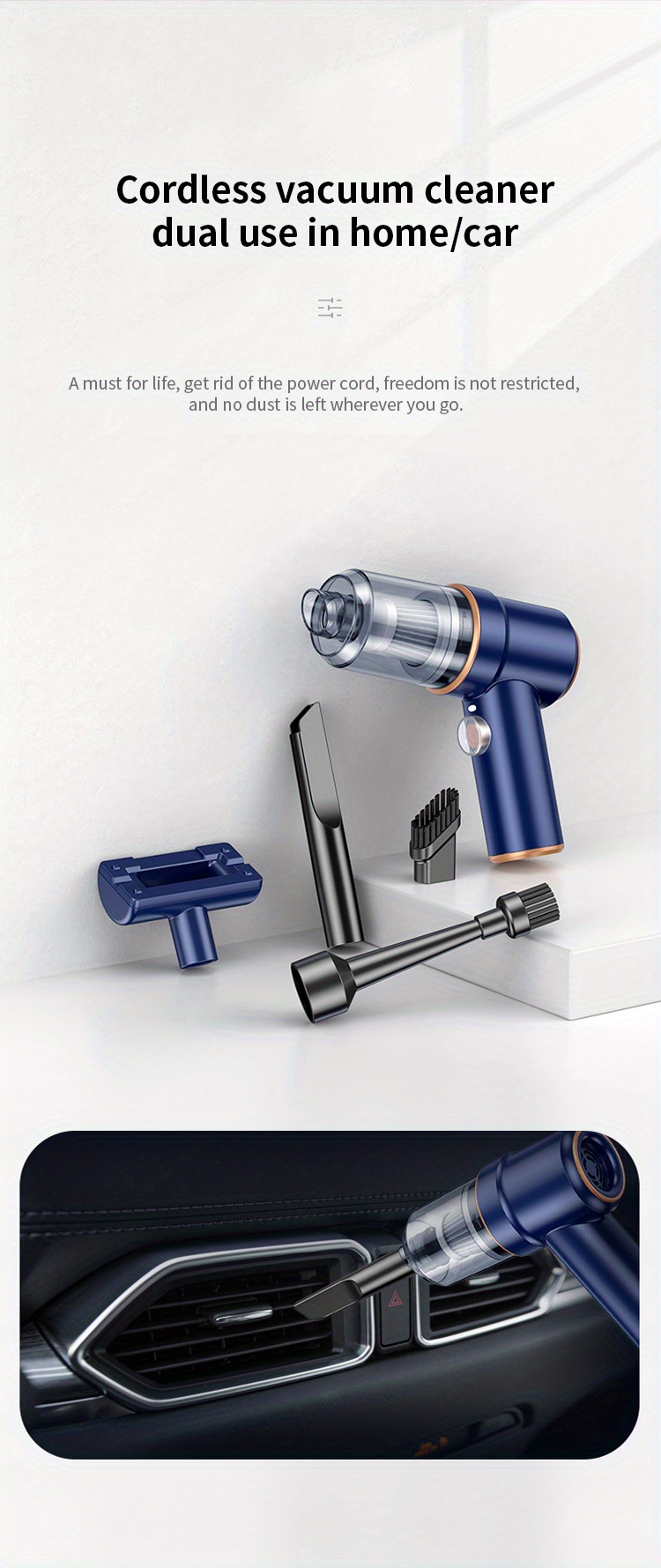 Беспроводной ручной автомобильный пылесос 2-в-1: всасывание и воздуходувка с зарядной базой
