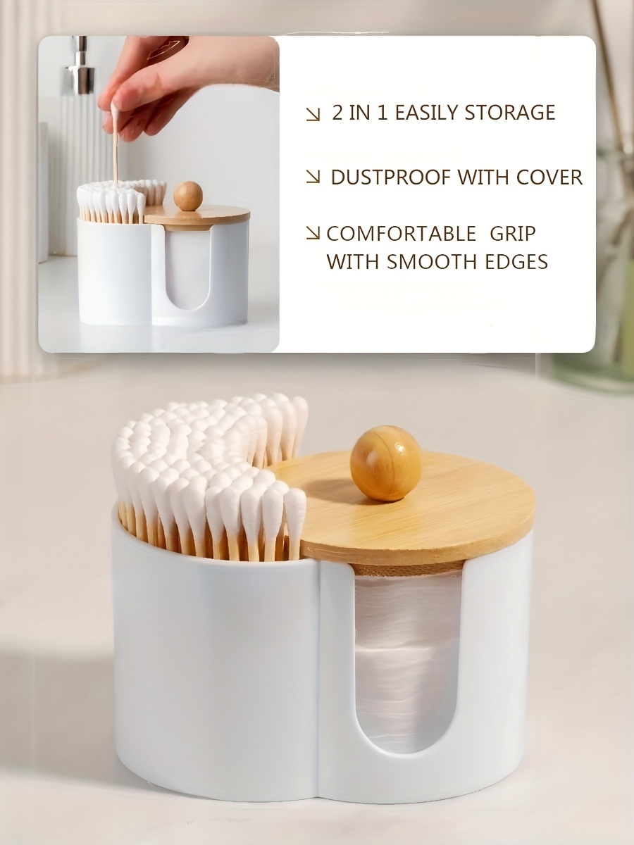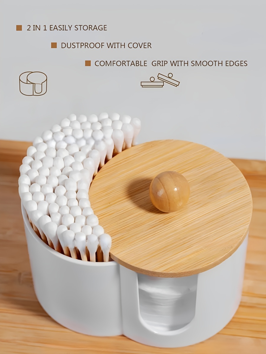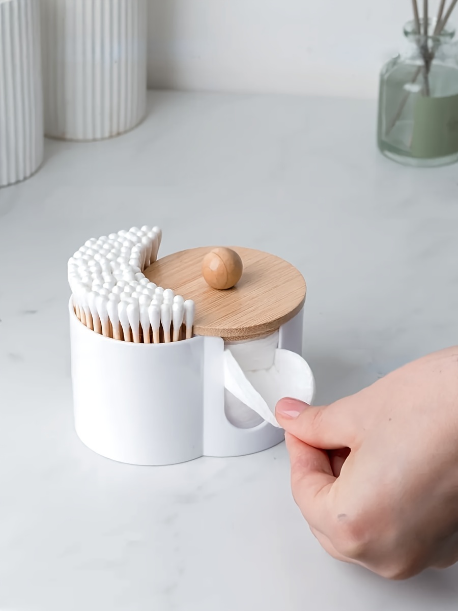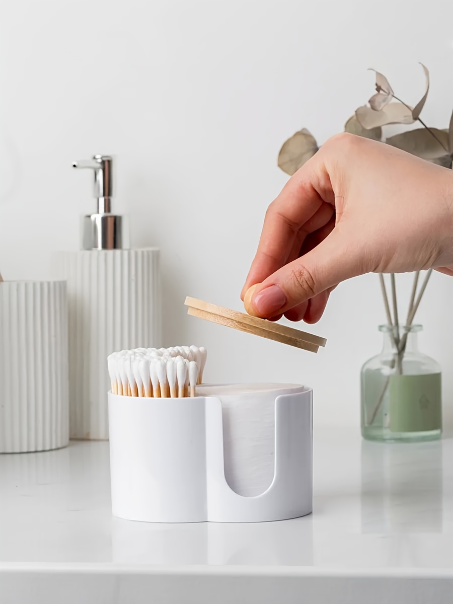 Коробка для хранения ватных палочек с деревянной крышкой, двухотверстий контейнер