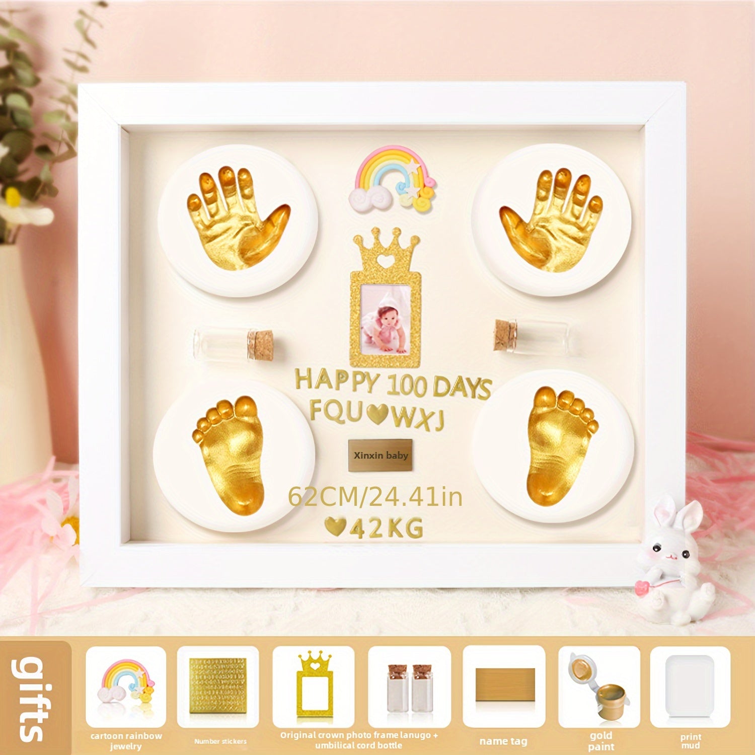 Создайте свой уникальный сувенир на первый день рождения вашего ребенка с нашим набором для отпечатков рук и ног, который включает в себя фоторамку.