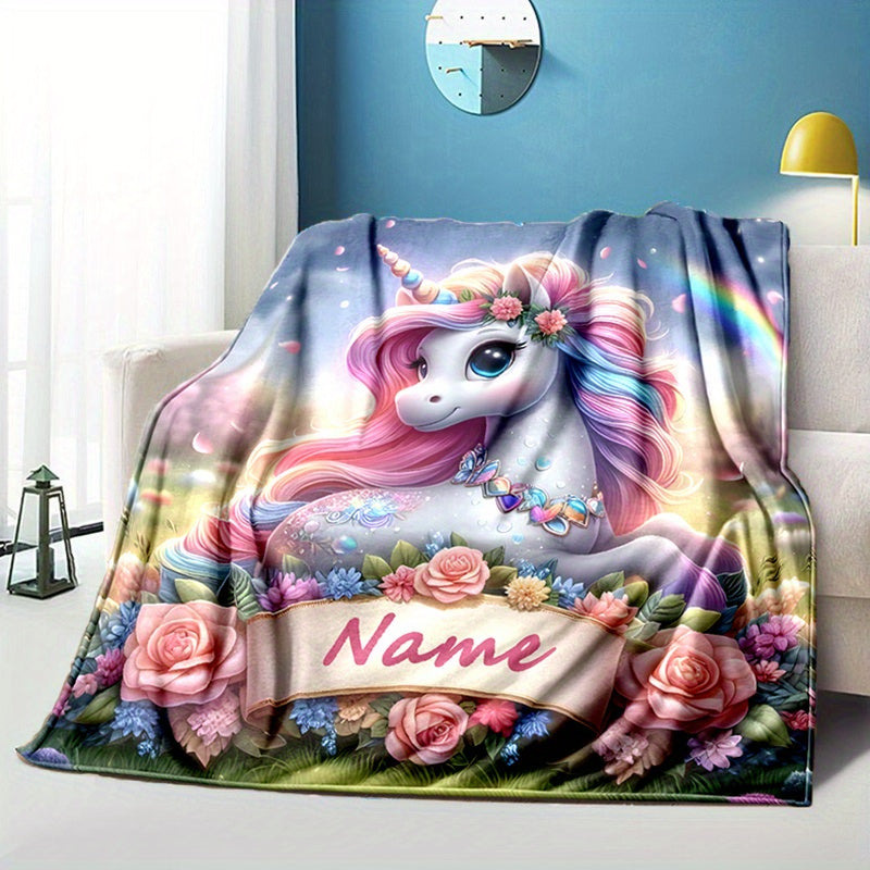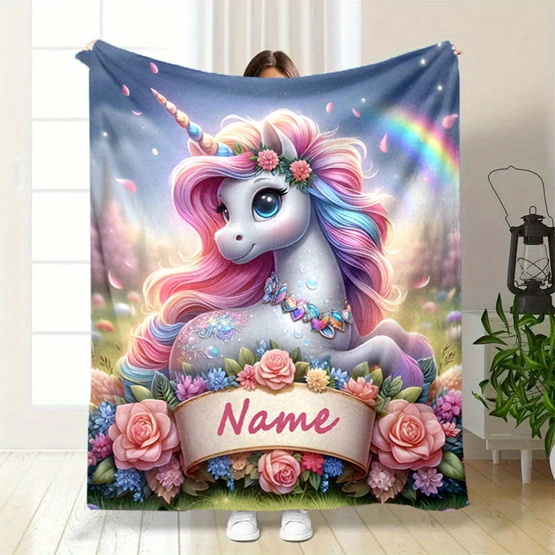 Настройте свой собственный единороговый плед - персонализированный мягкий и уютный фланелевый плед для любого случая - идеально подходит для всех сезонов, рождественских и хэллоуинских подарков - универсальное покрывало с современным мультяшным дизайном