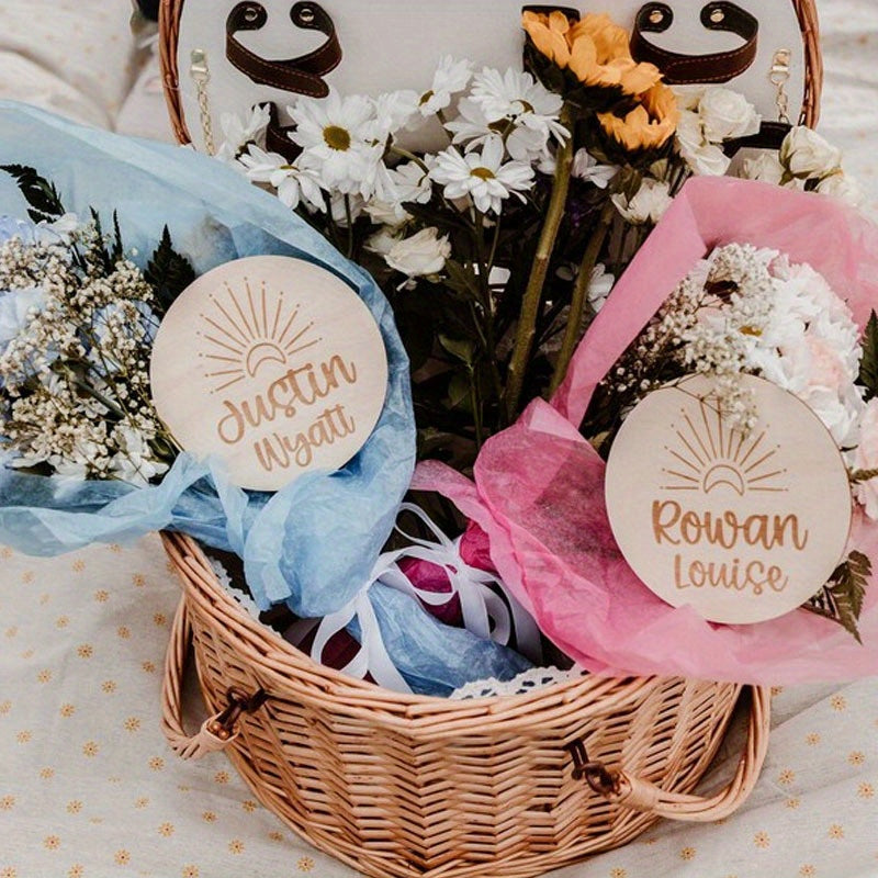 Настройте свой собственный деревянный солнечный знак с именем для уникального объявления о рождении, персонализированного сувенира для новых родителей.