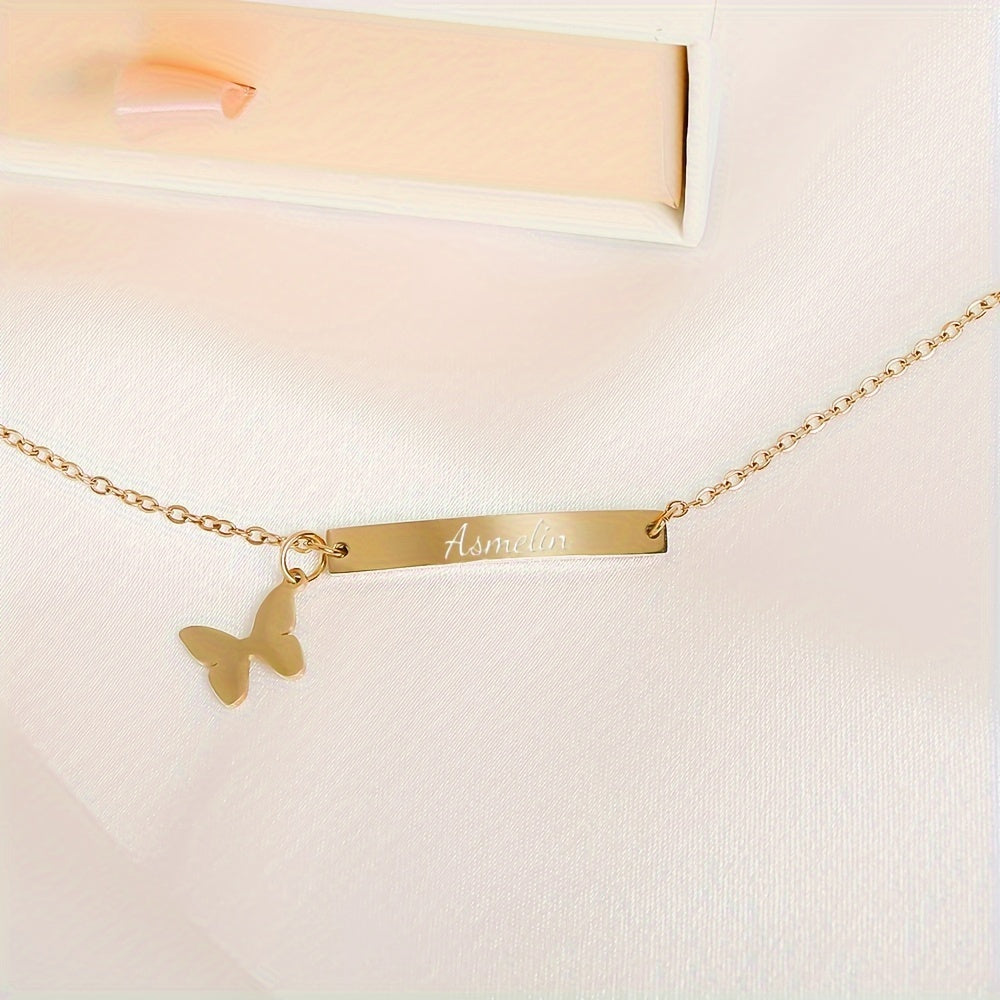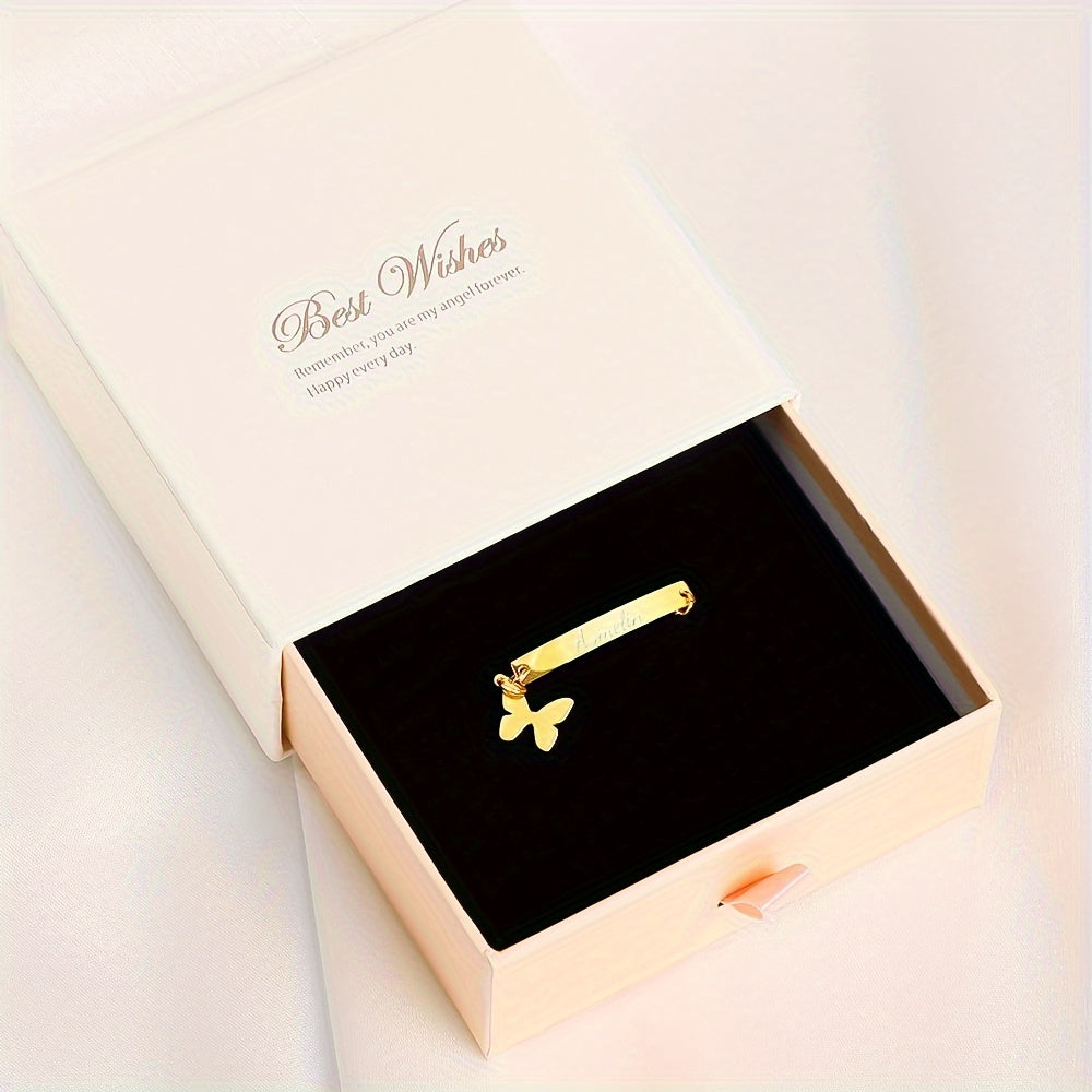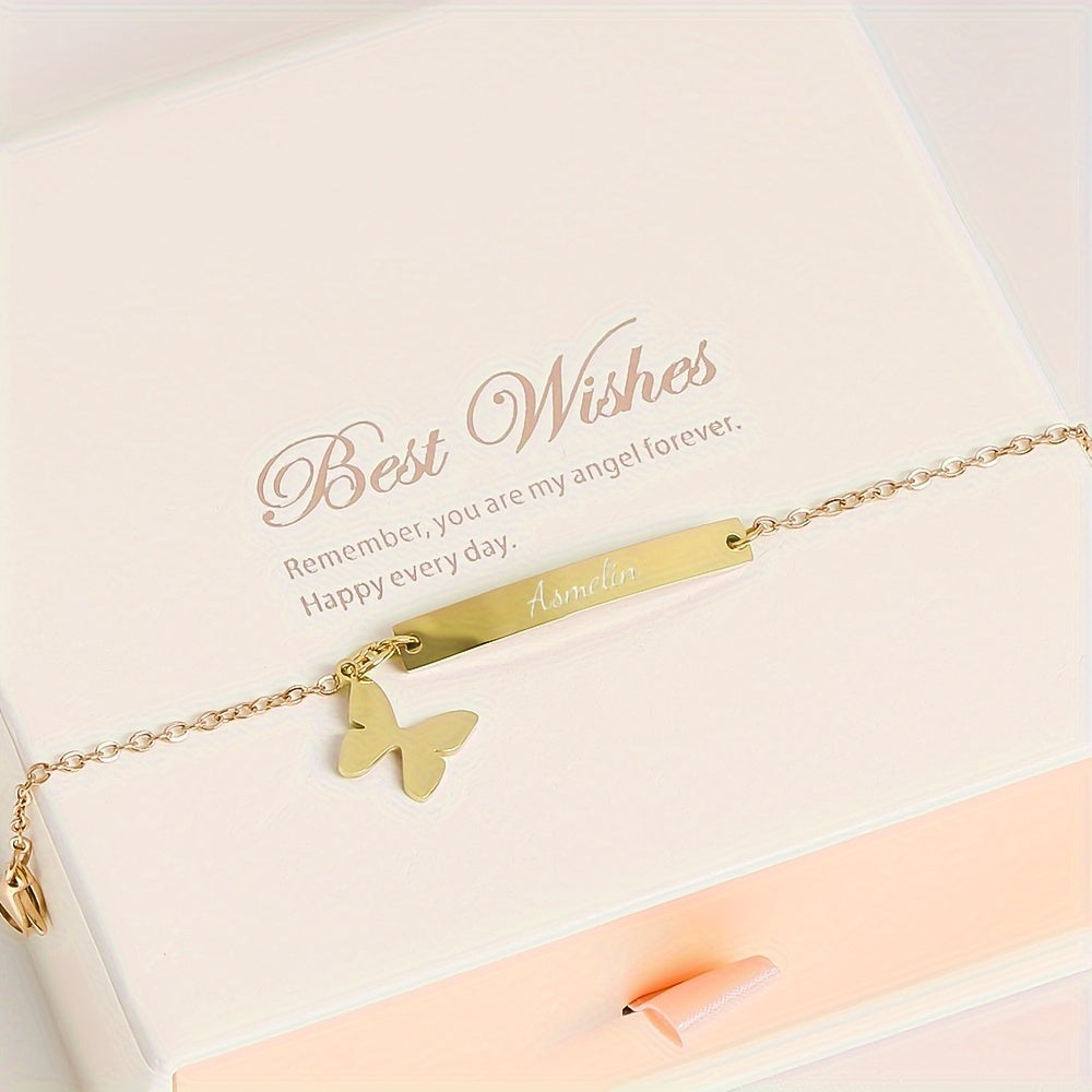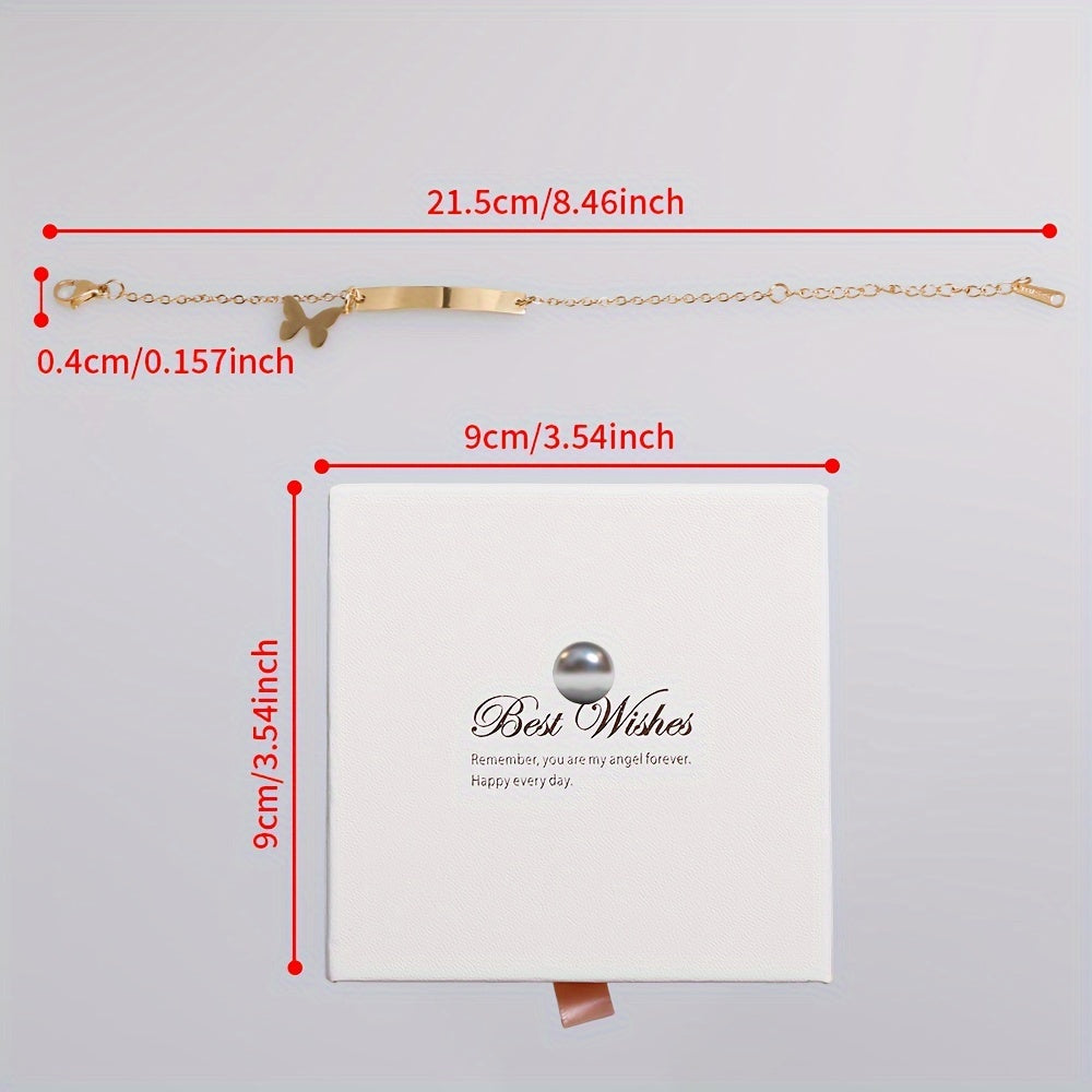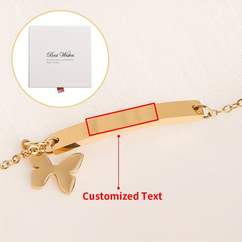 Браслет-бабочка из титанового сплава с гравировальной планкой для дней рождения и юбилеев