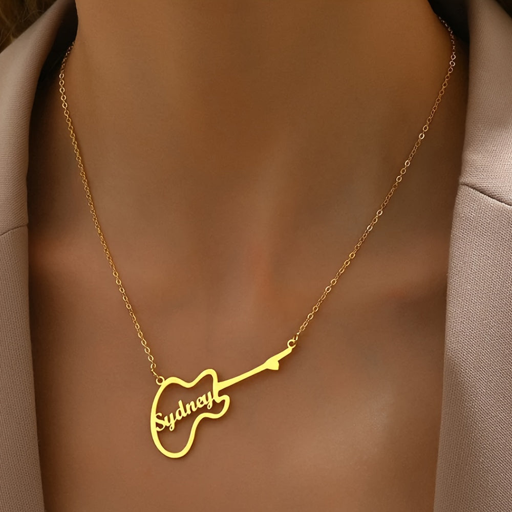 Индивидуальное ожерелье с символом гитары, элегантный бохо стиль, изготовлено из нержавеющей стали и покрыто 18-каратным золотом, идеальный подарок для любителей музыки, подходит для повседневной носки в любое время года и для особых случаев.