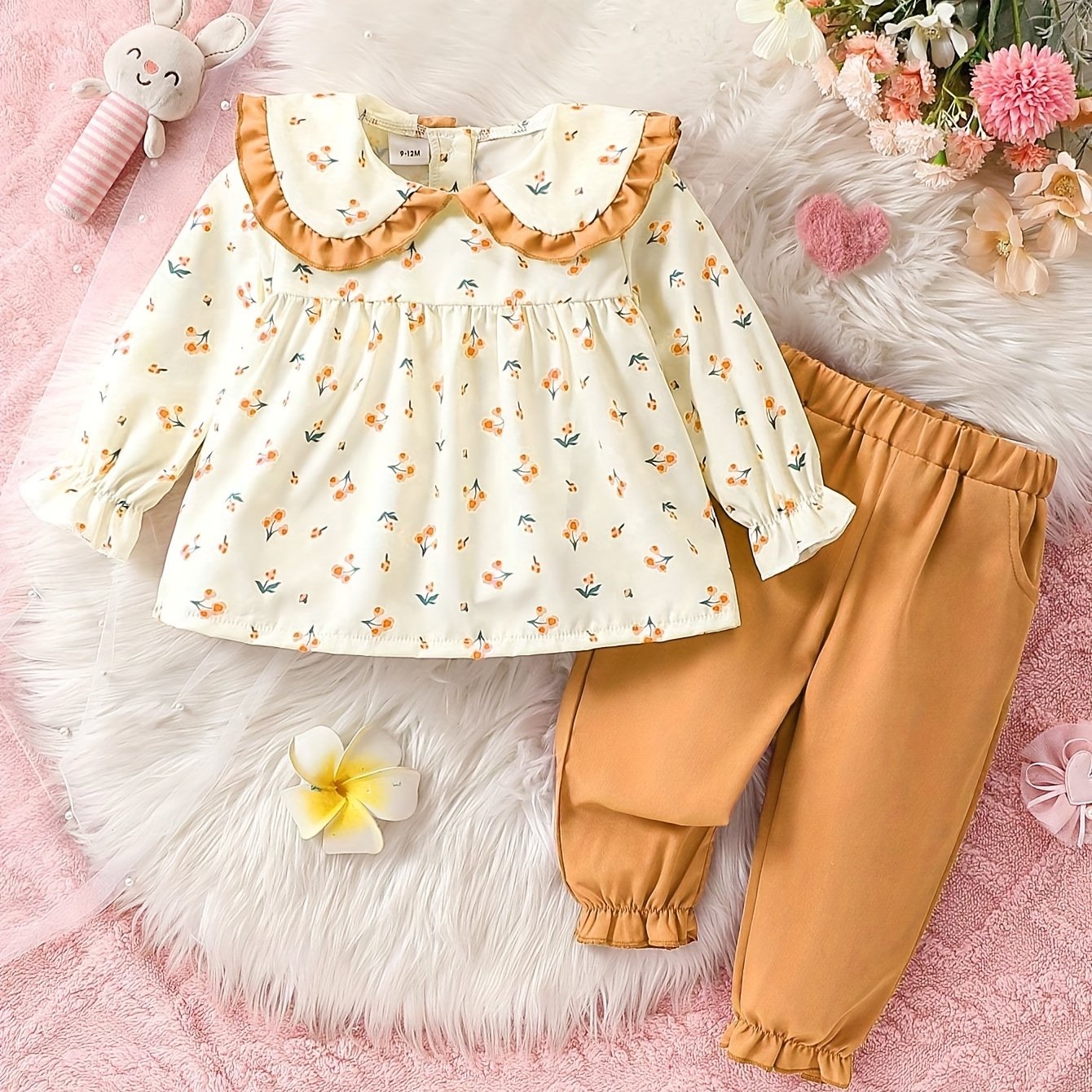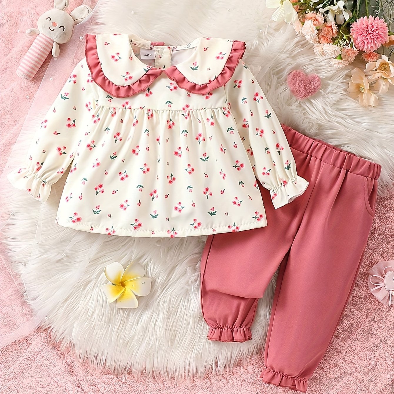 Костюм для малышки с цветочной блузкой и розовыми джоггерами для весны и осени