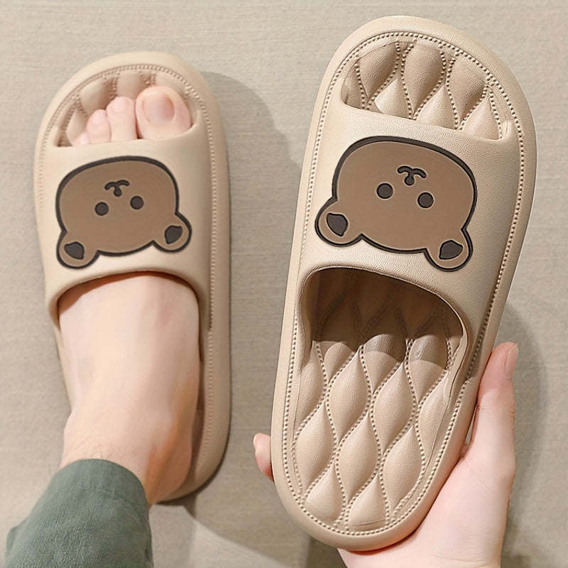 Мультяшный дизайн медведя EVA тапочки для пар, нескользящие, легкие, для дома и улицы, лето, повседневные, бежевые и коричневые