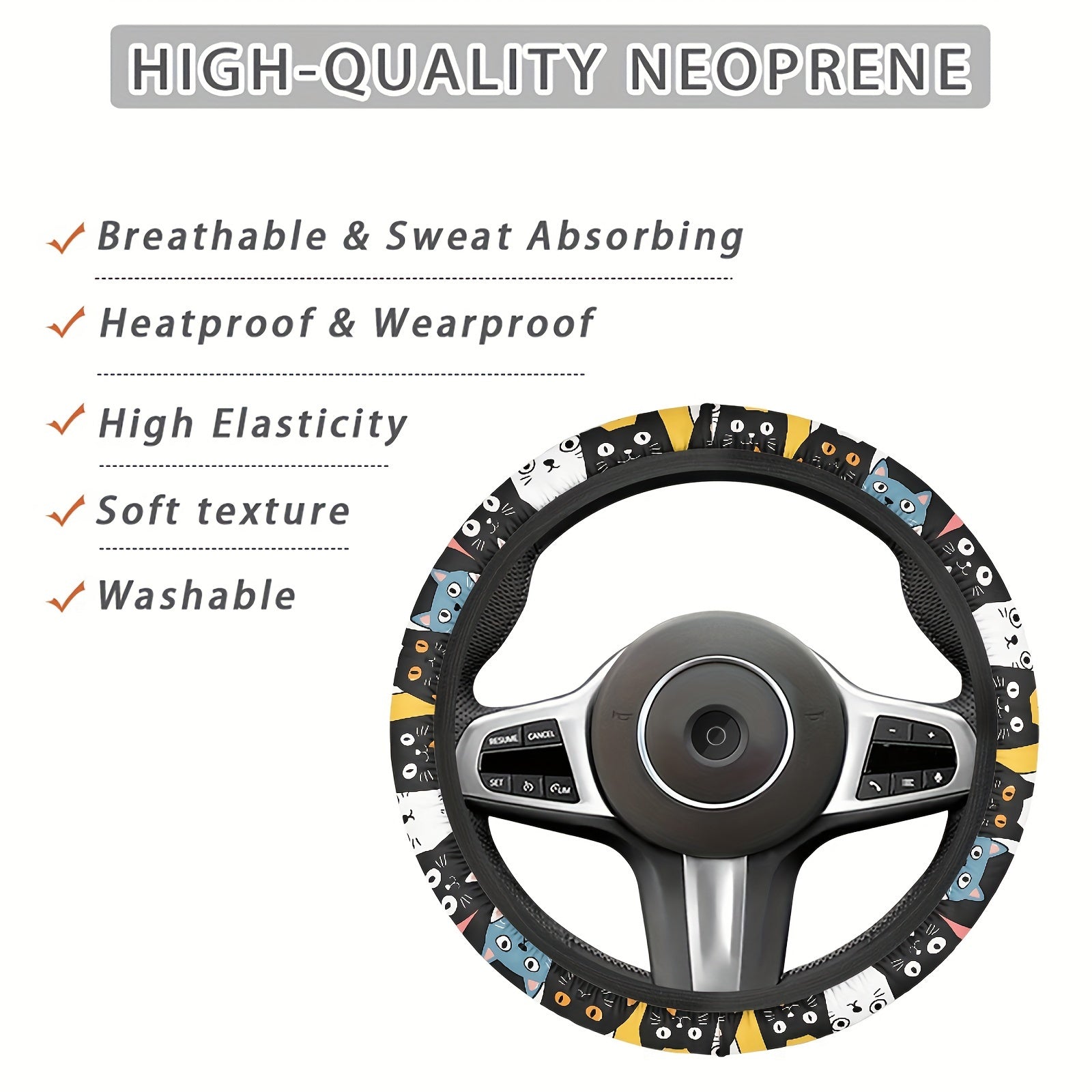 Милый мультяшный чехол на руль с антискользящим эффектом из полиэстера, автомобильный аксессуар