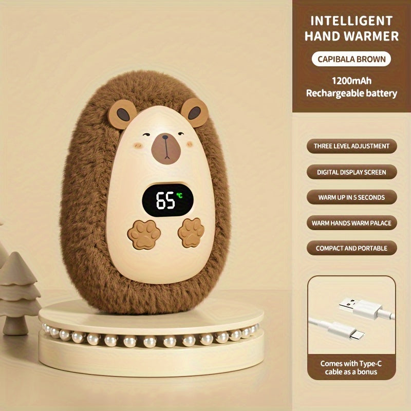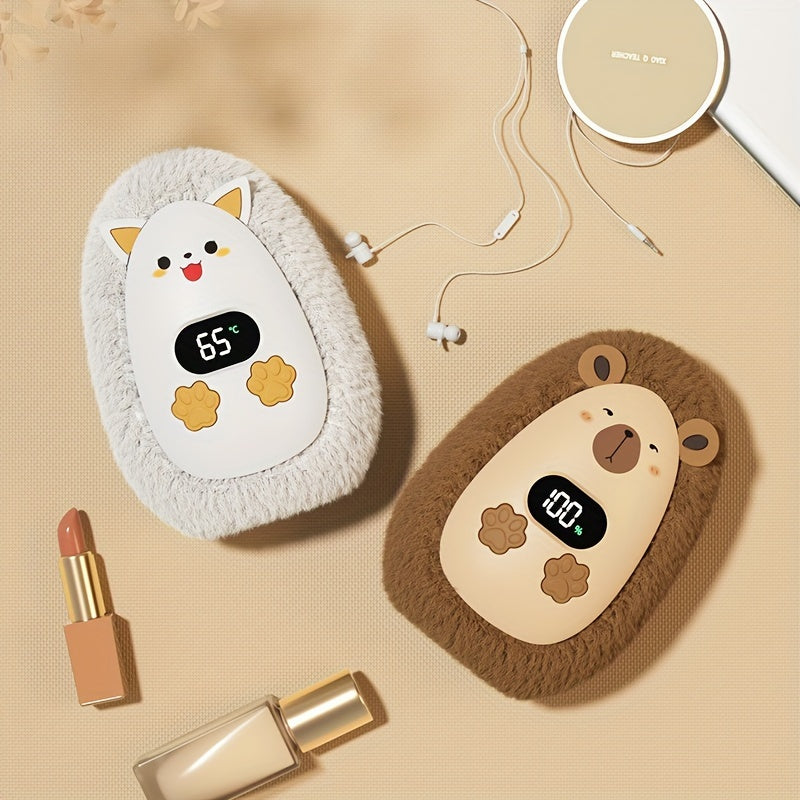 Милая портативная грелка для рук с мультяшным дизайном и пушистым чехлом, заряжается через USB, литиевая батарея емкостью 1200 мАч, круглый пластиковый электрический обогреватель мощностью 3 Вт, быстро нагревается за 5 секунд