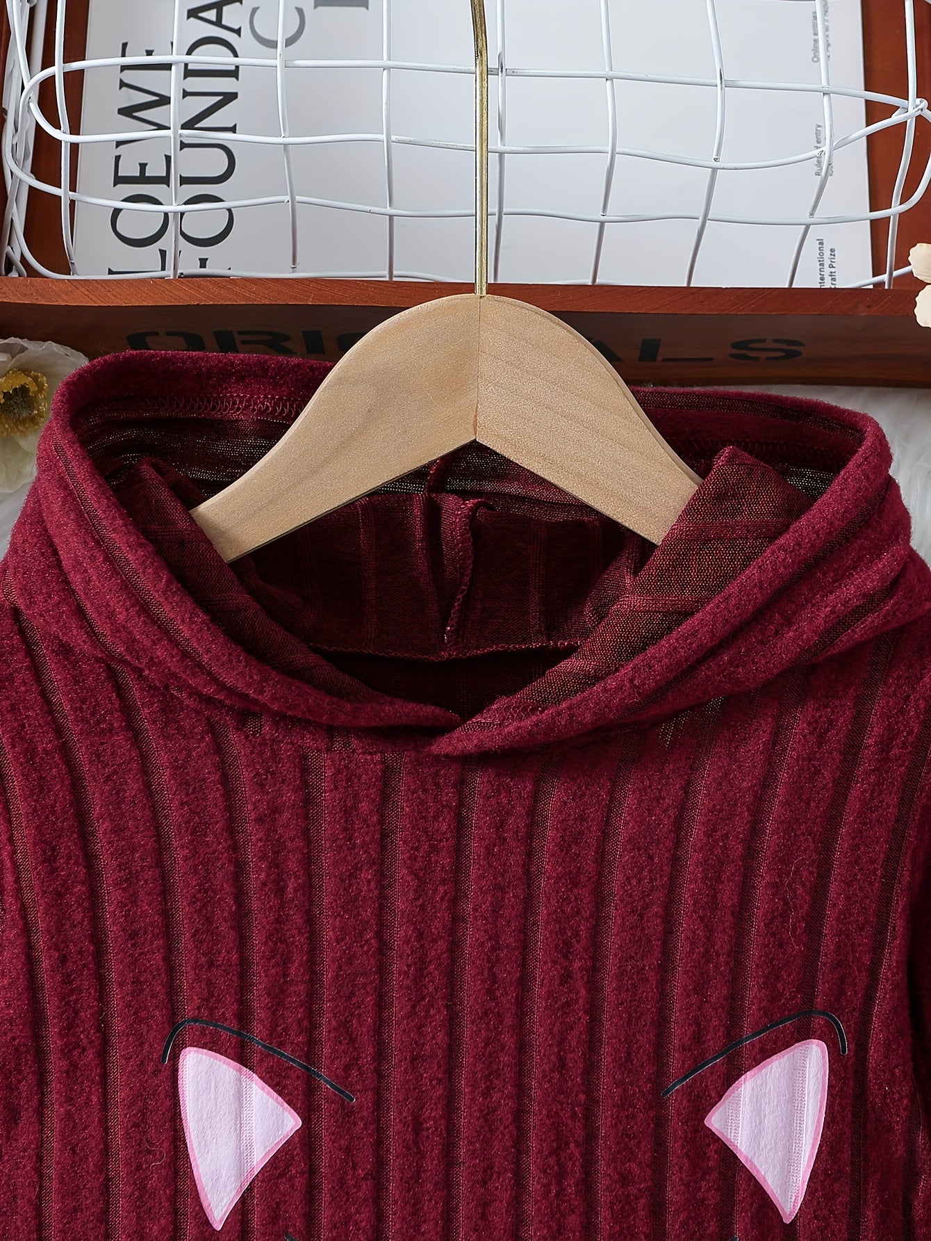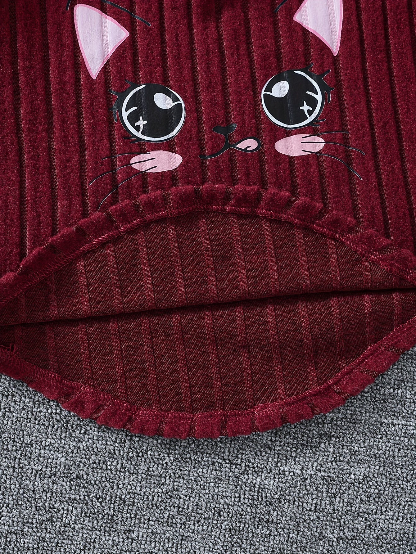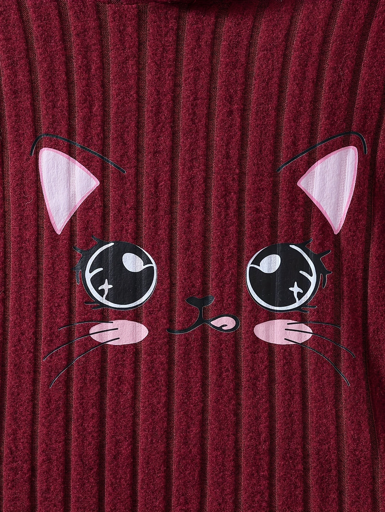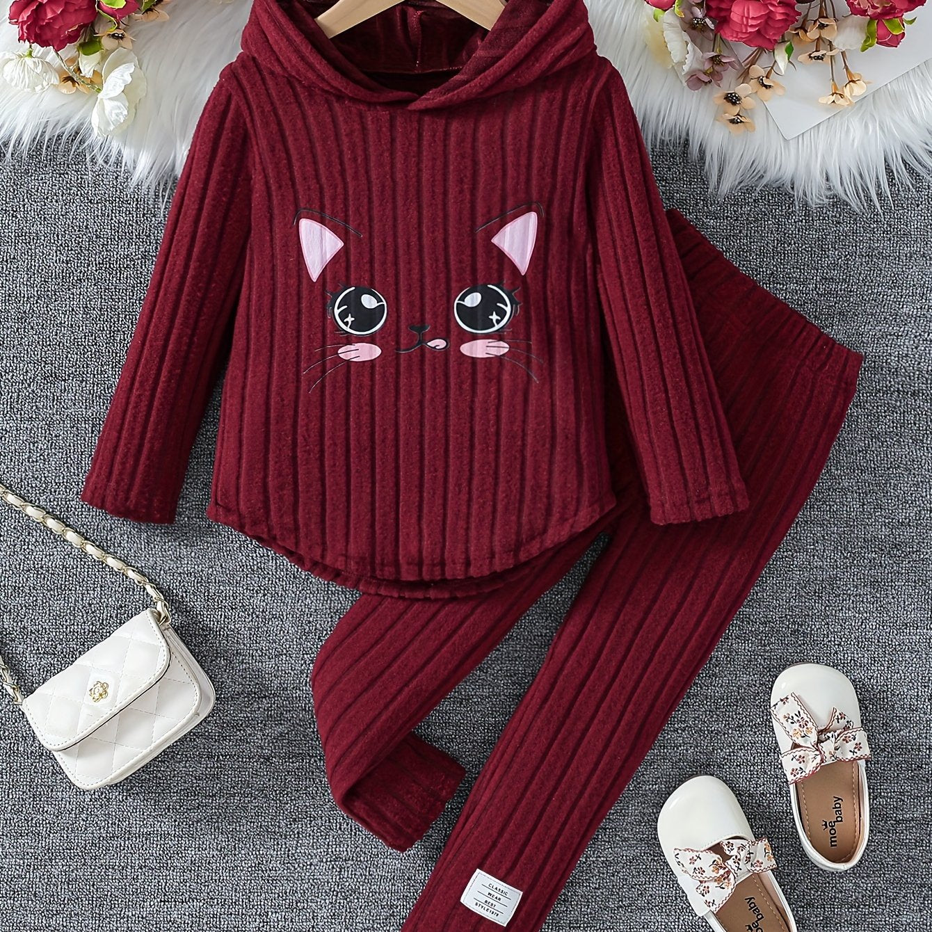 Девочкиный комплект из полиэстера для всех сезонов: худи и штаны с дизайном лица кота