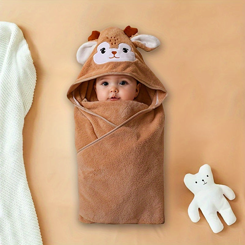 Милый мультяшный халат для детей с оленем - Уютный, дышащий и высоко впитывающий полотенце-обертка для детей, идеально подходит для отдыха и путешествий, легко стирается в стиральной машине - Хаки