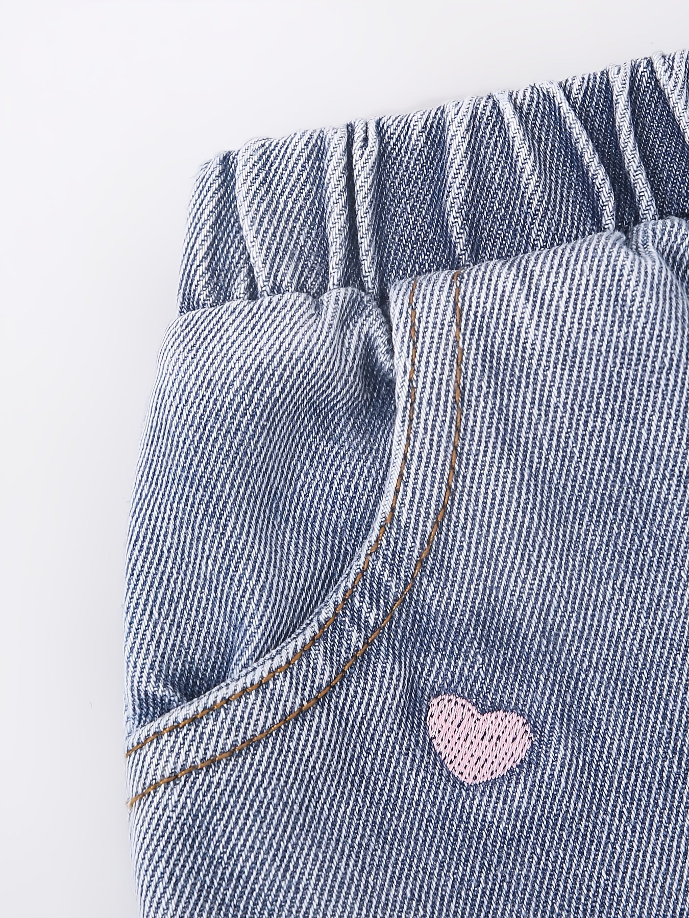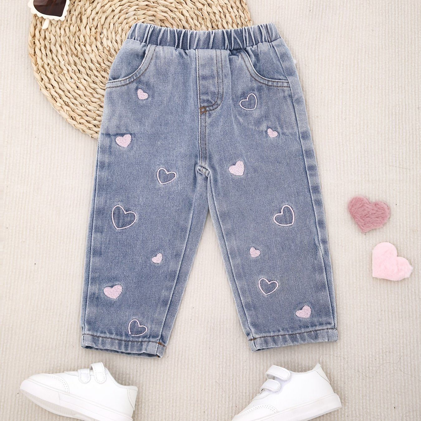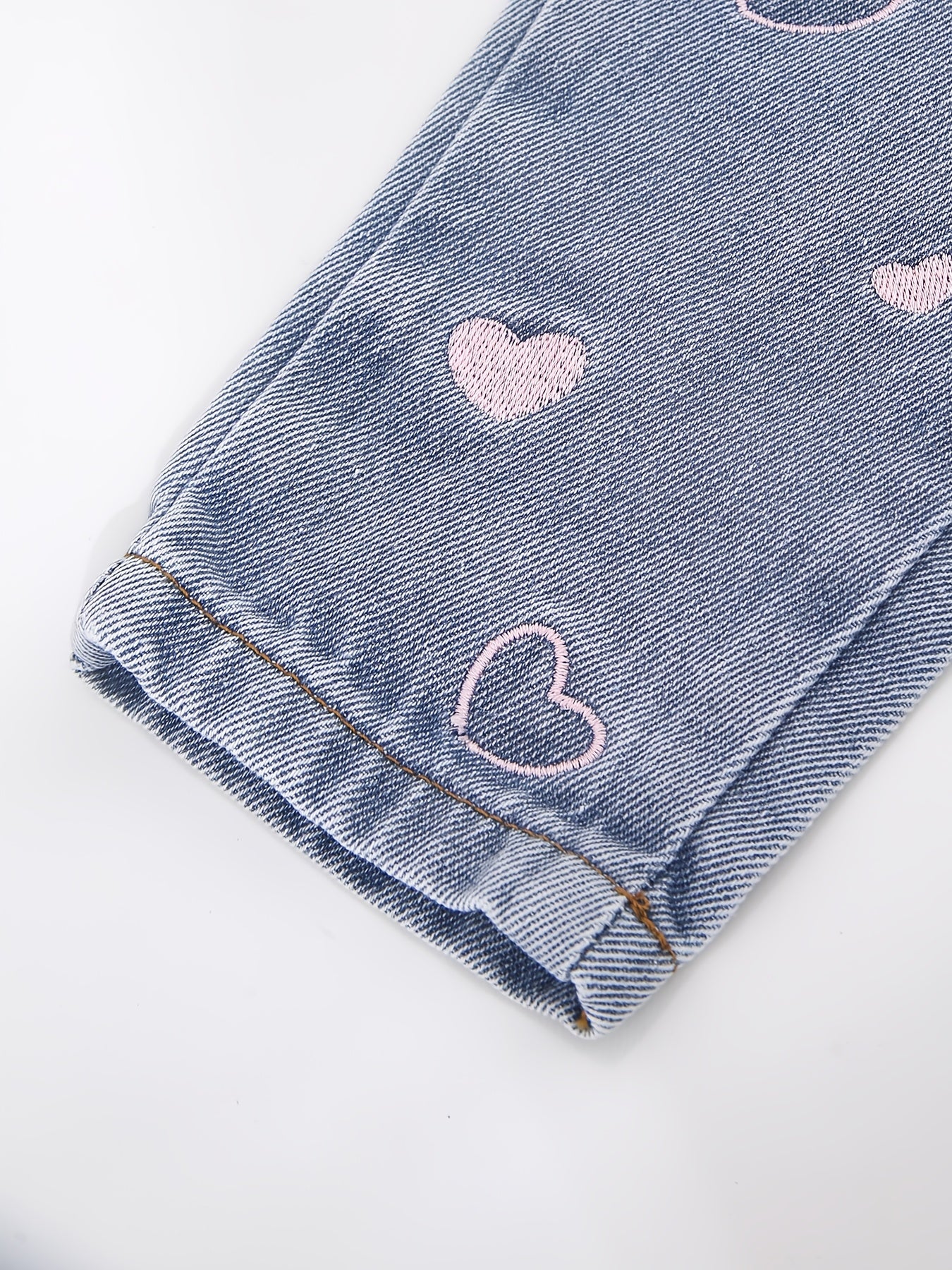 Джинсы для девочек с вышивкой в виде сердца, из смеси вискозы, моющиеся в машине, для весны и осени