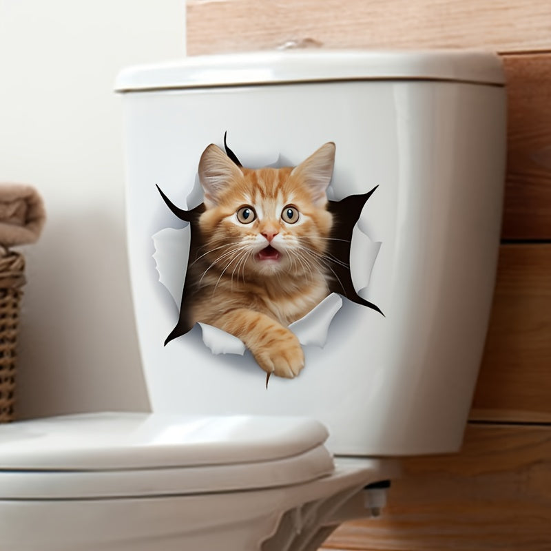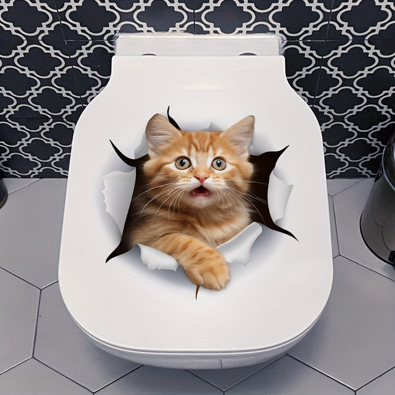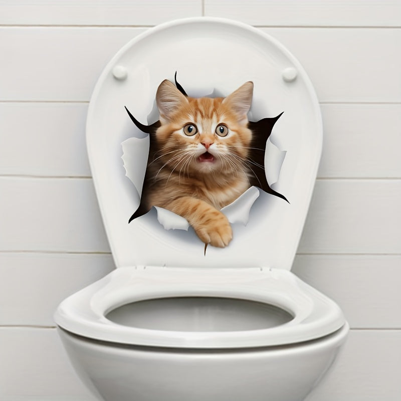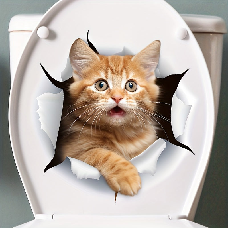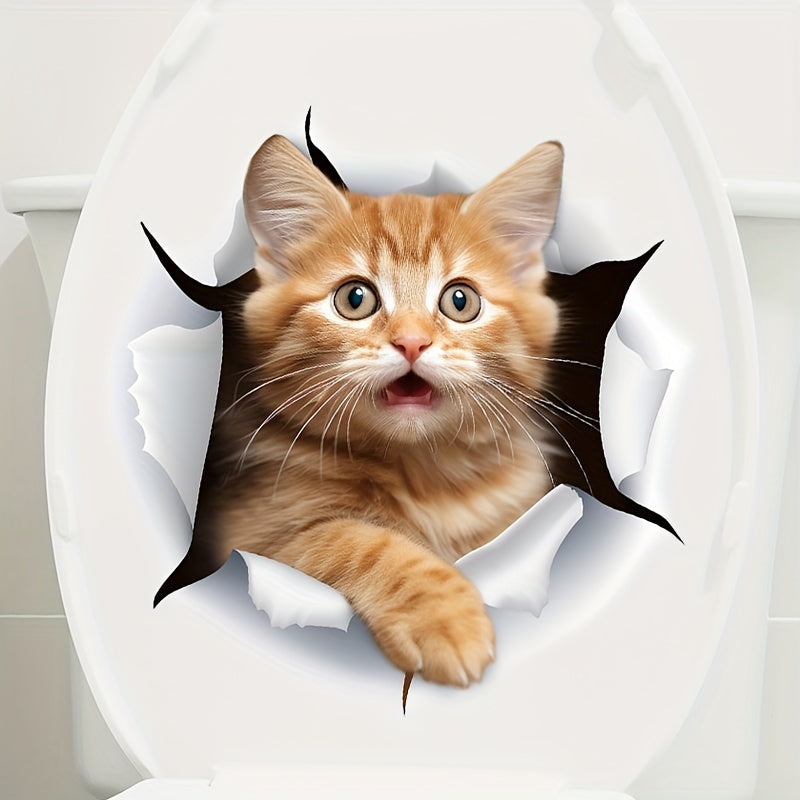 Наклейка на крышку унитаза с изображением оранжевого кота, съемная наклейка на дверь в ванную