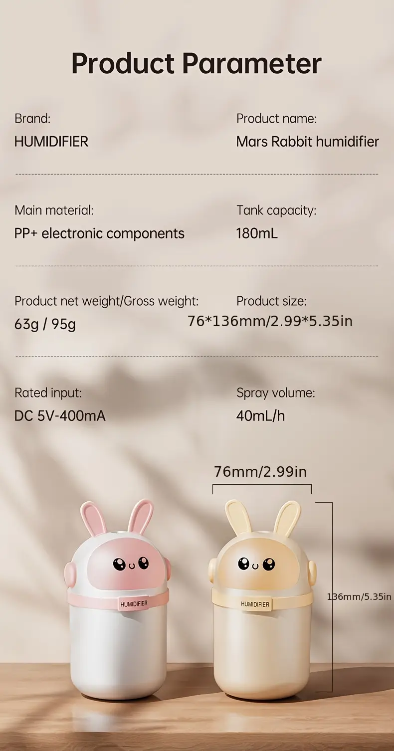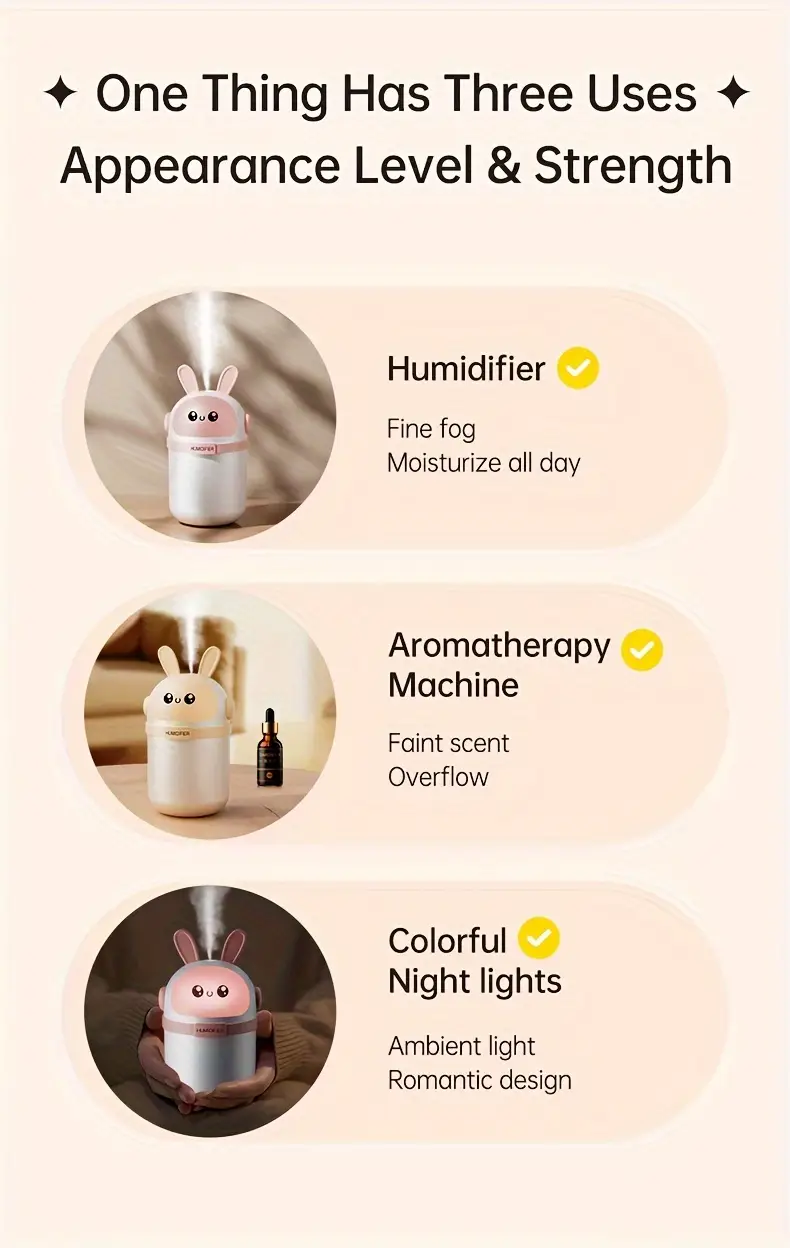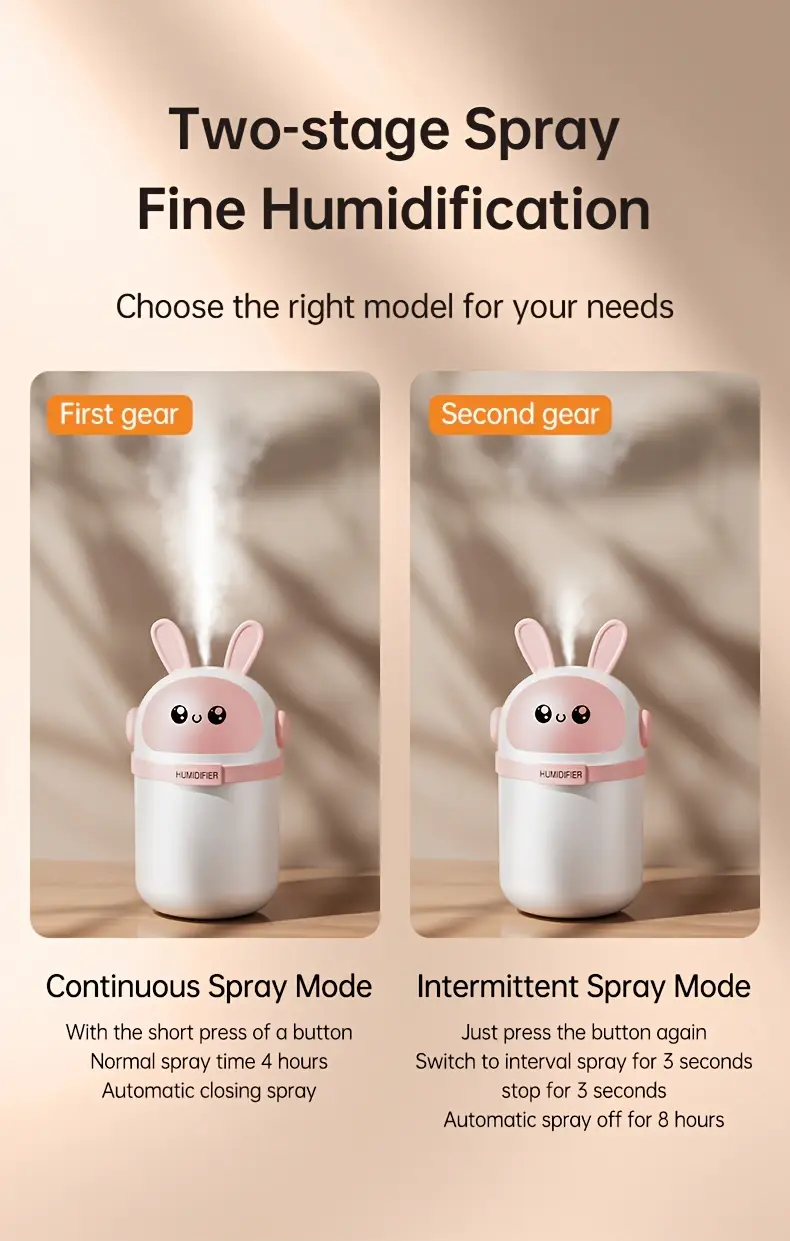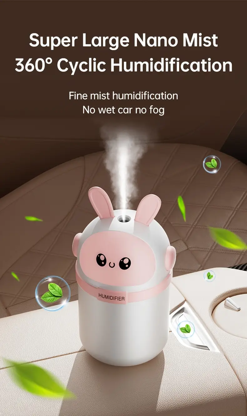Милый розово-белый ультразвуковой увлажнитель с наноместом для спальни и автомобиля