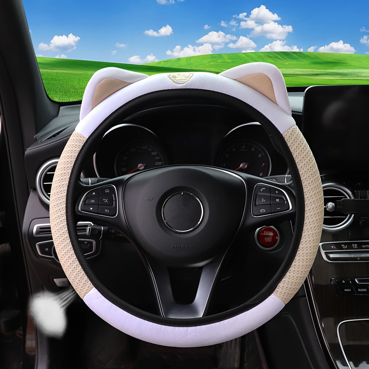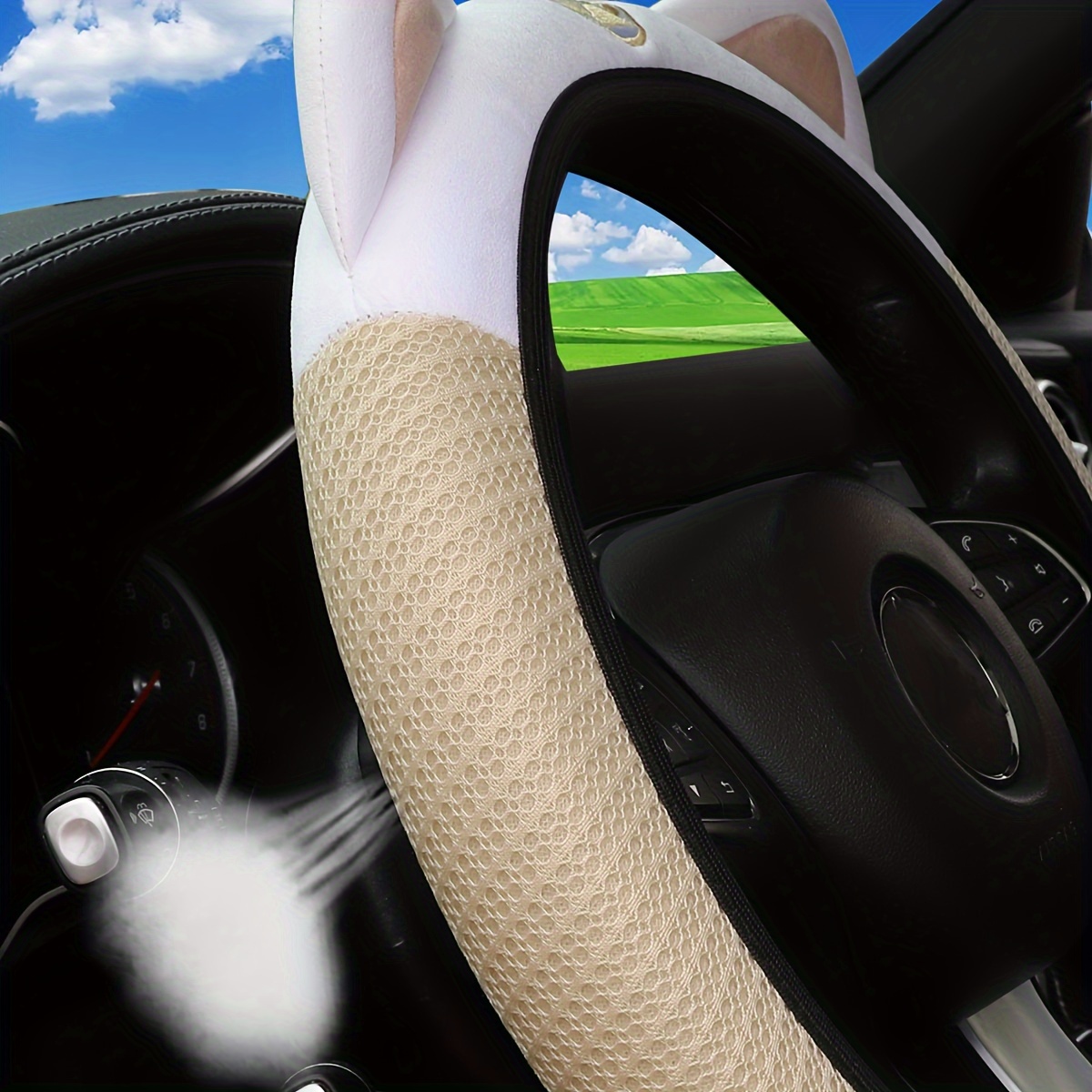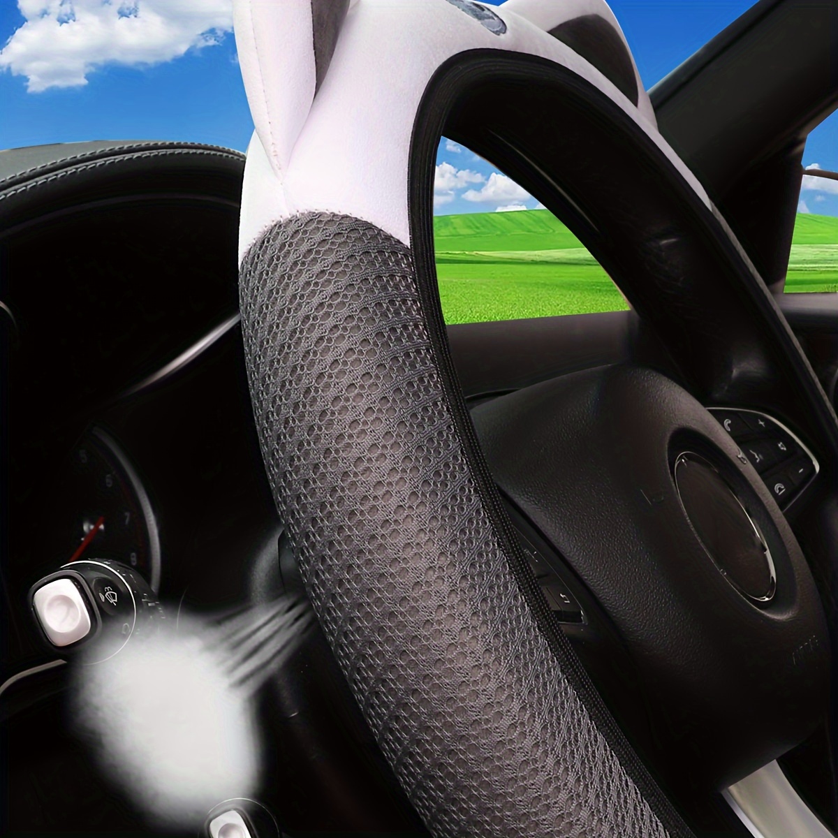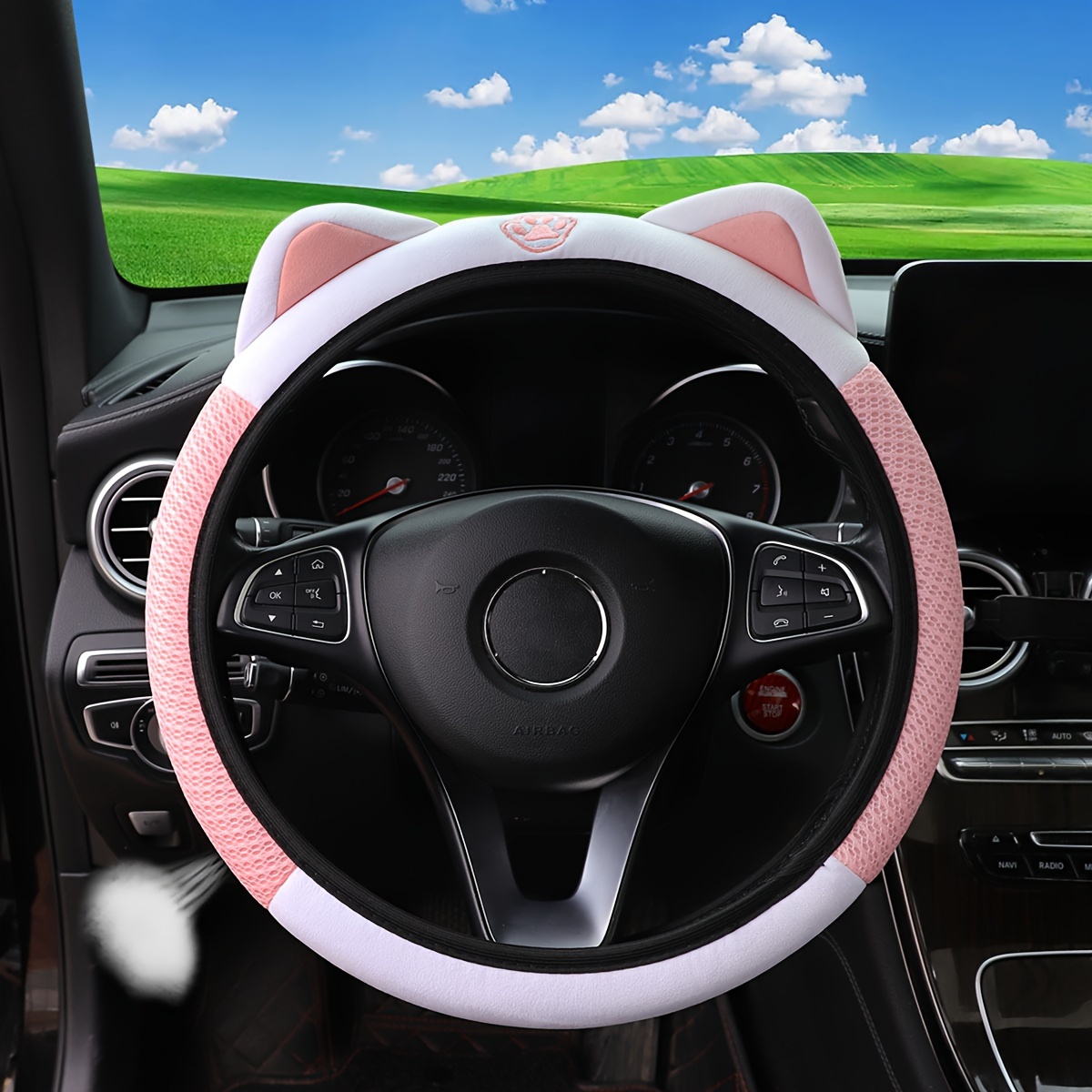 Милый розовый белый чехол на руль с сетчатой дышащей тканью, эластичный автомобильный аксессуар
