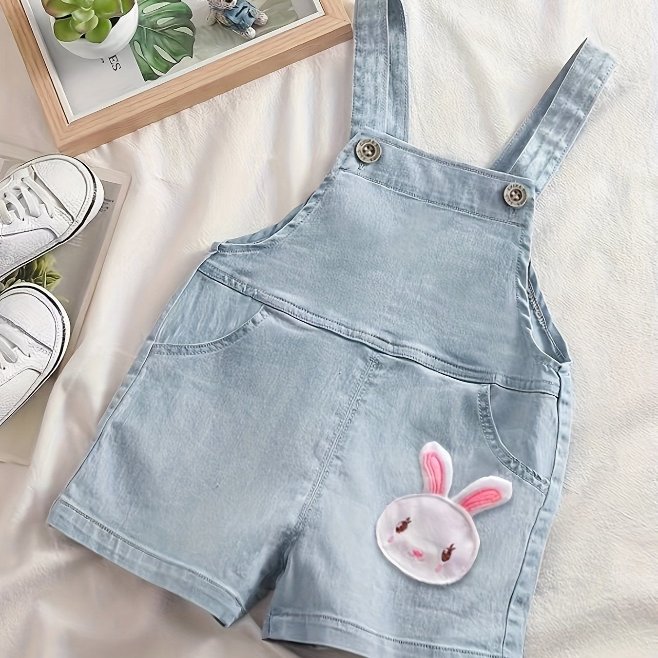 Джинсовый комбинезон для девочек с нашивками кроликов, летний из хлопкового смесового материала, для малышей и младенцев