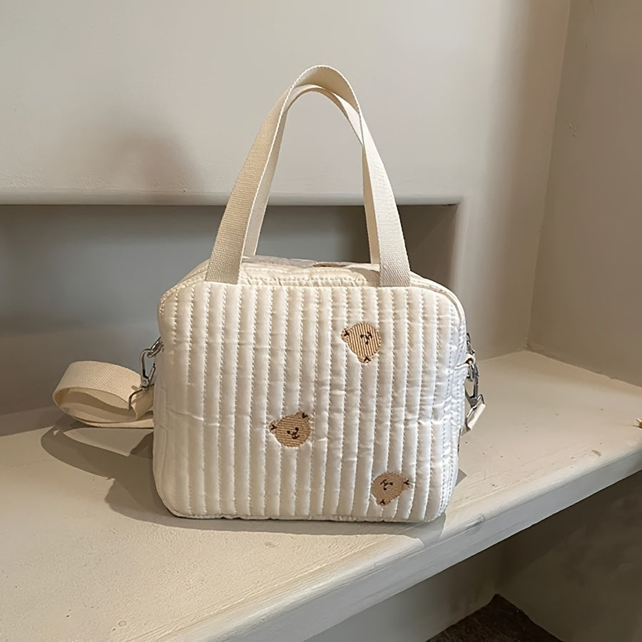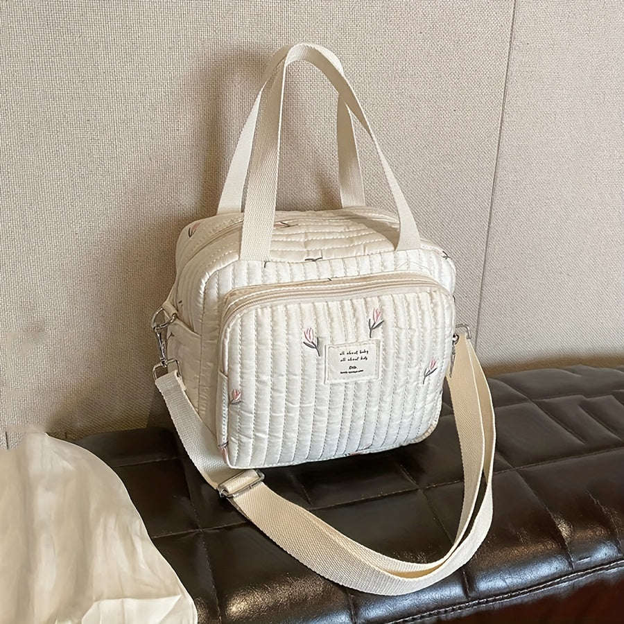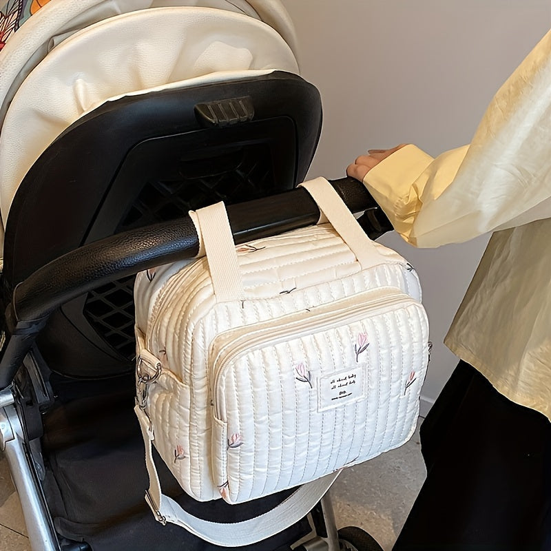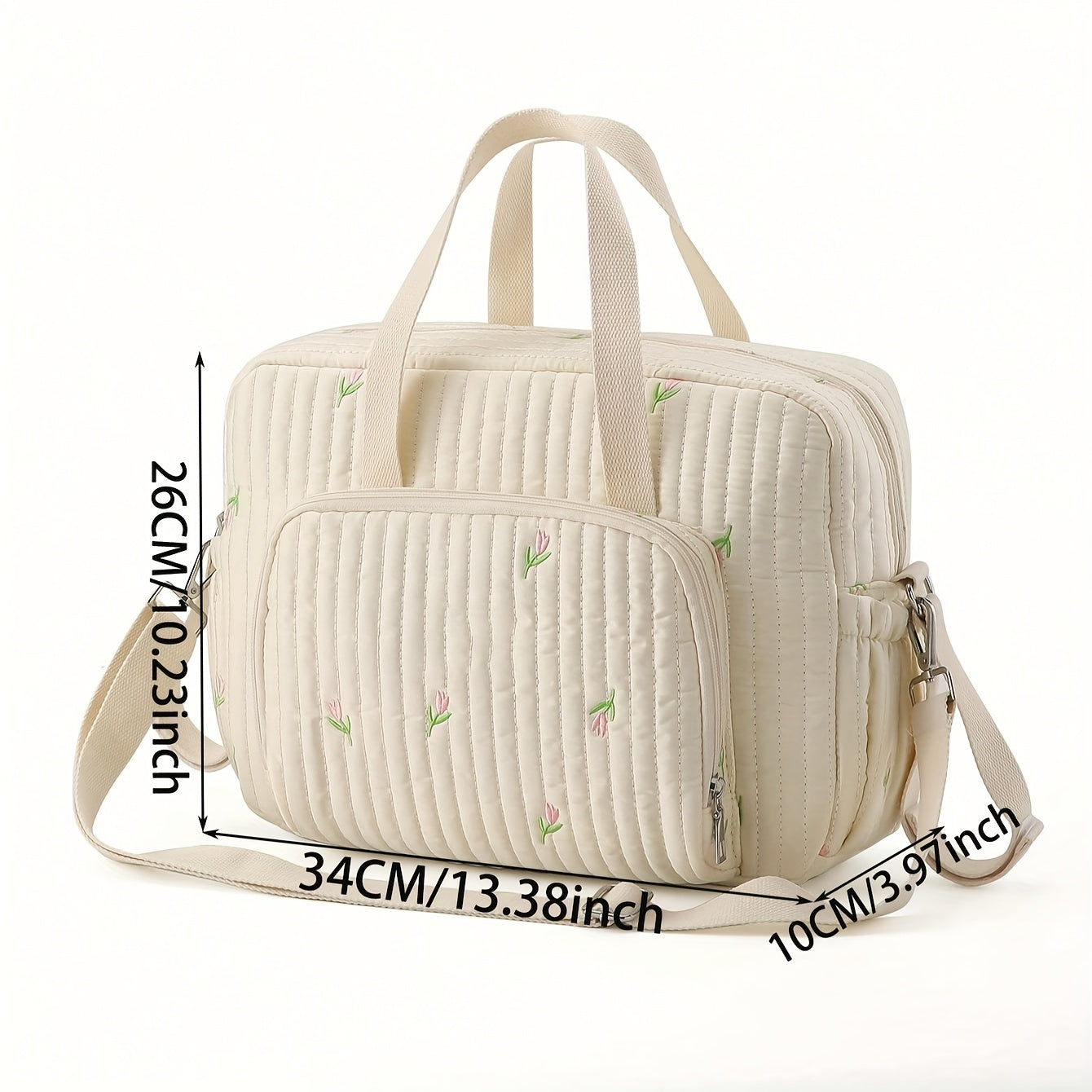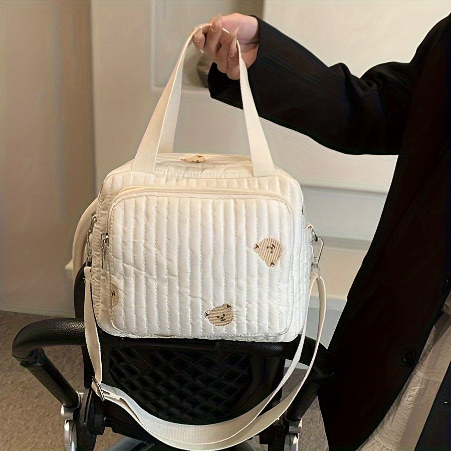 Сумка для подгузников с вышивкой медведя и тюльпана - стильная нейлоновая сумка через плечо для родителей с клипсой для коляски для путешествий с маленькими детьми