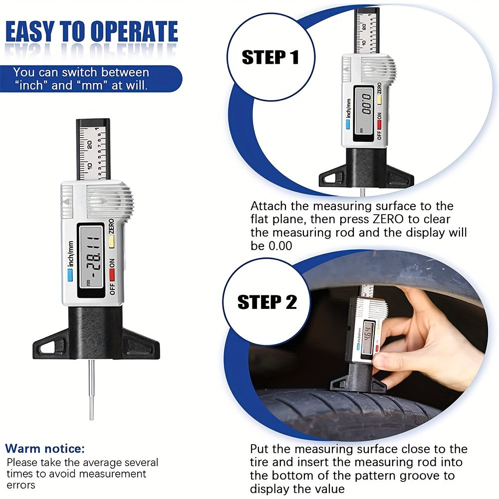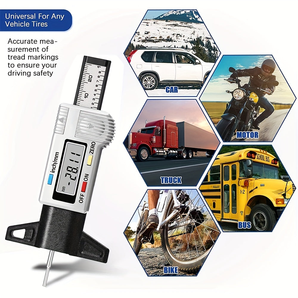 Цифровой измеритель глубины протектора шин 0-25,4 мм дюйм Автомобиль грузовик мотоцикл