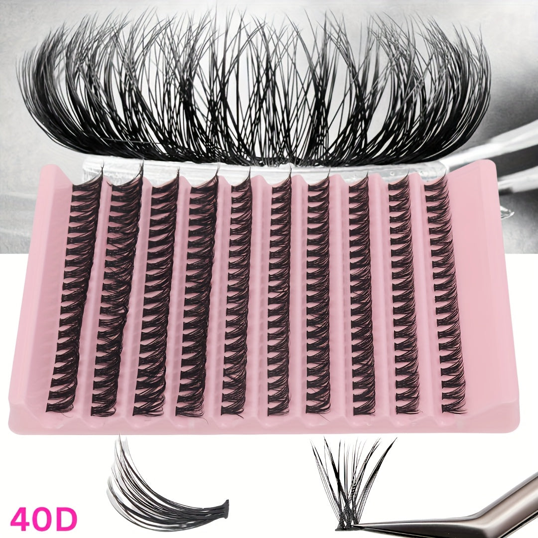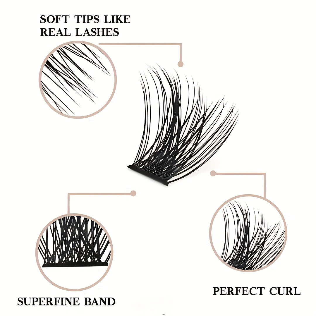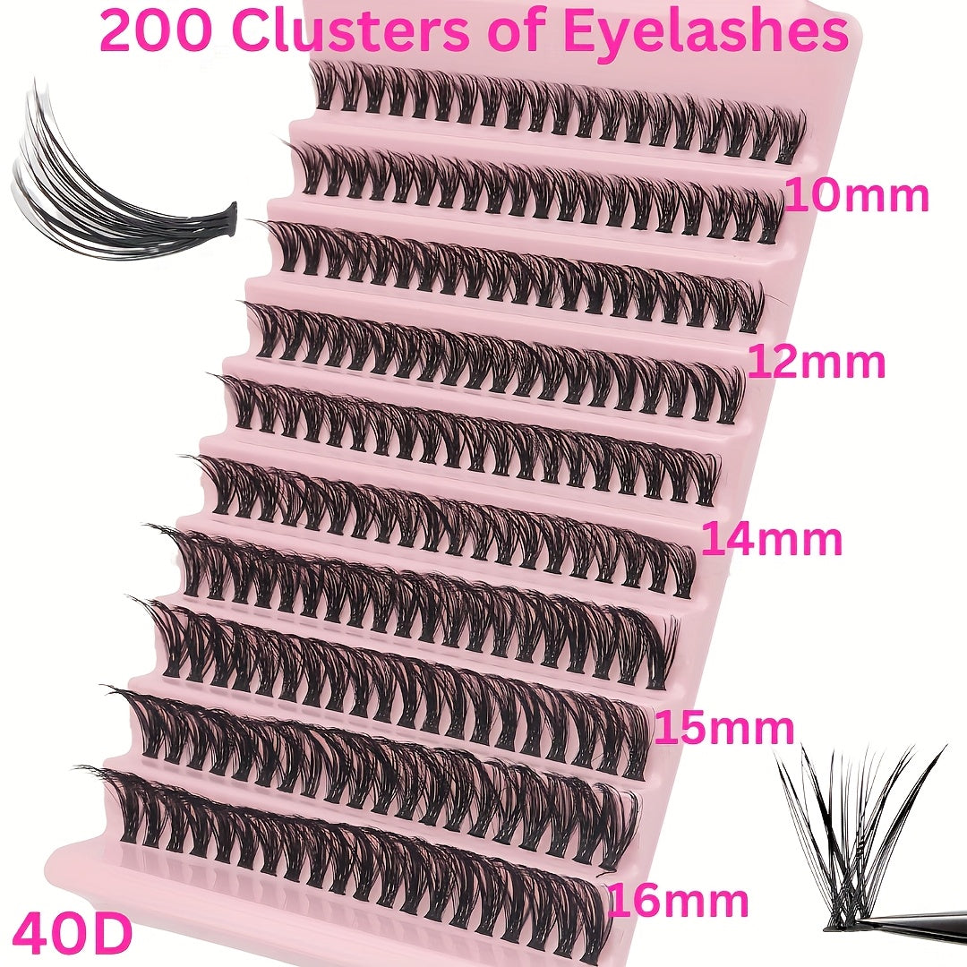 Набор для наращивания ресниц DIY включает в себя клей, пинцет и разнообразные тонкие пушистые ресницы разных длин и изгибов.