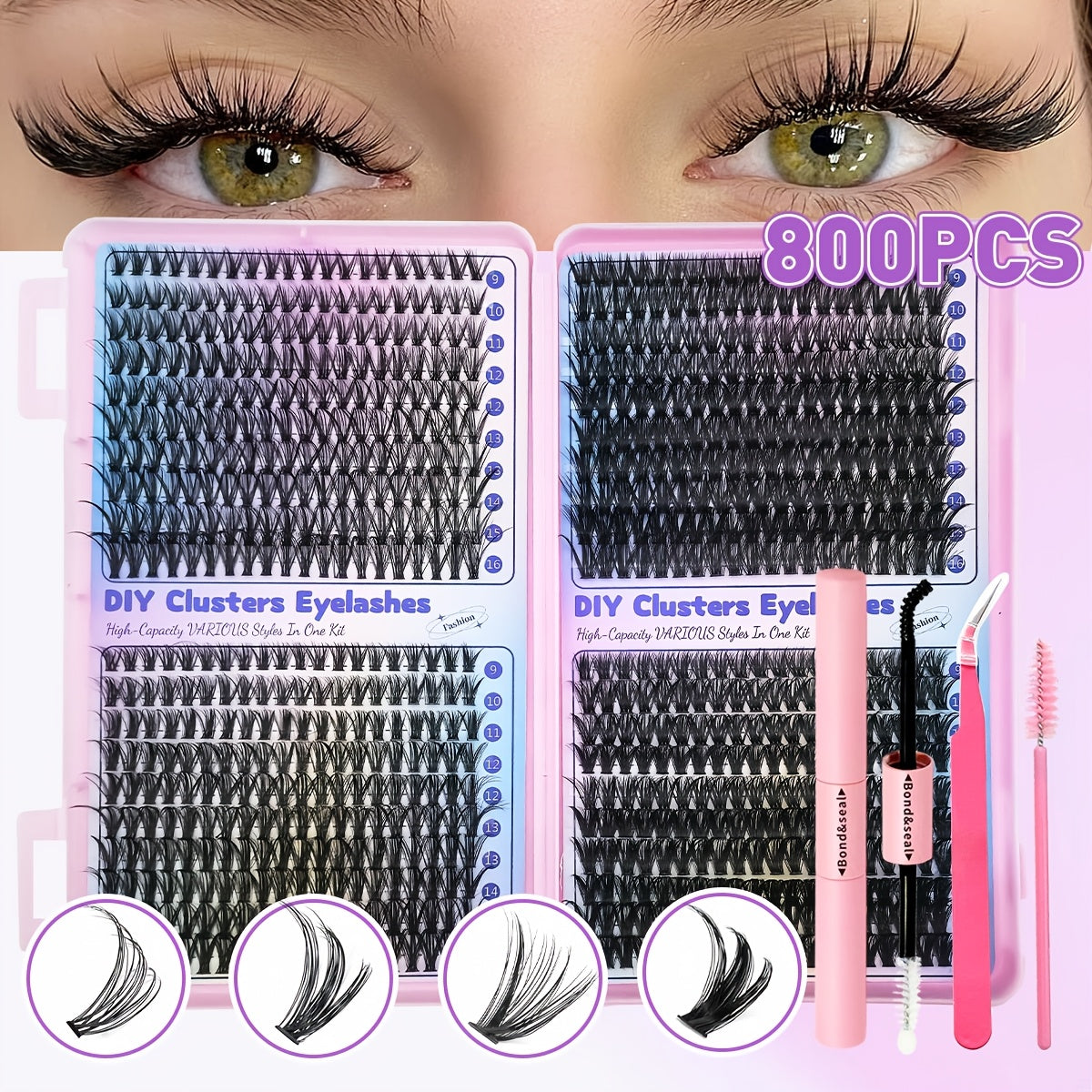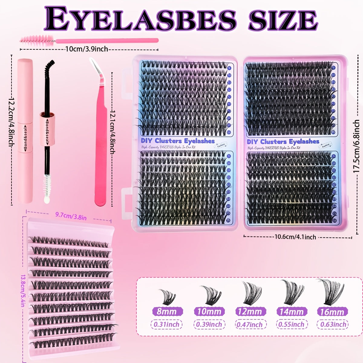 Набор для самостоятельного наращивания ресниц с индивидуальными пучками 9-16 мм для начинающих, пинцеты Lash Bond