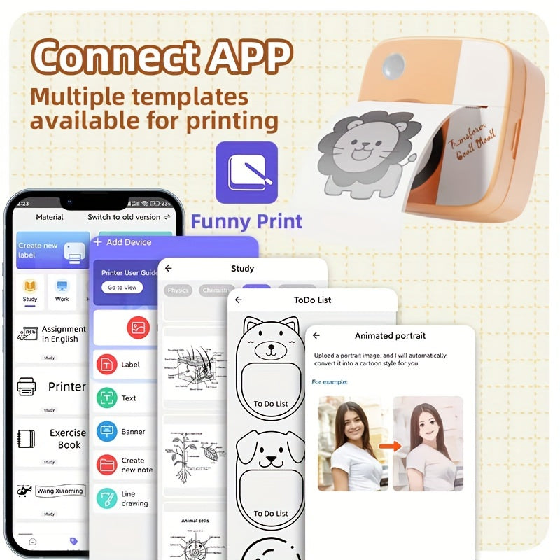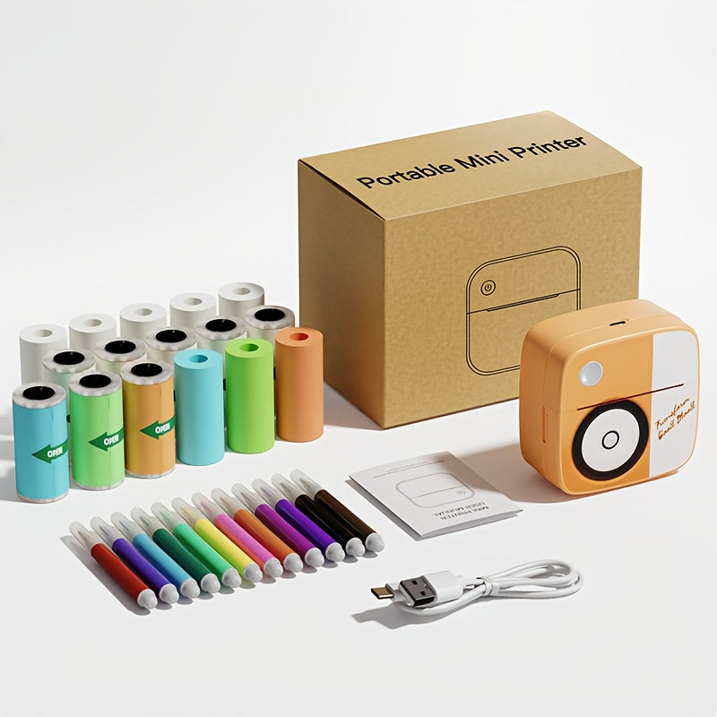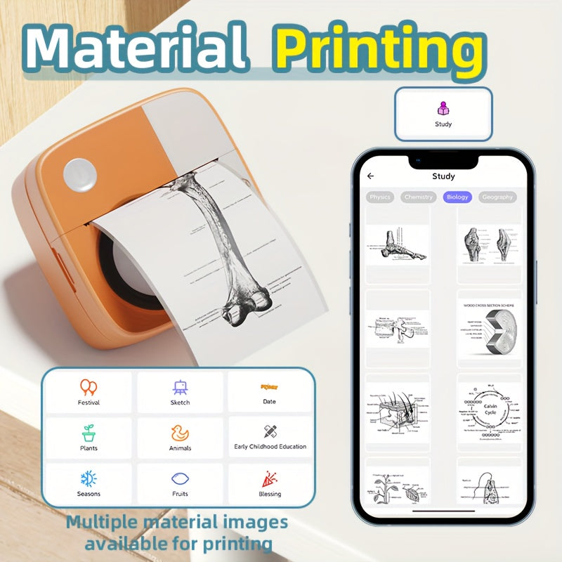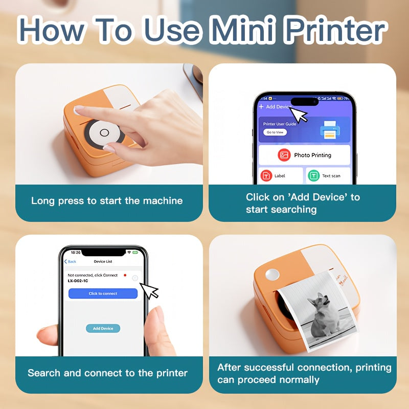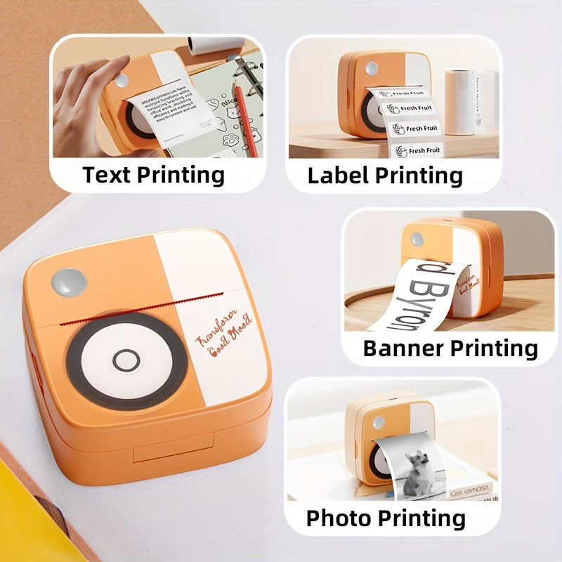 DOLEWA Портативный Мини Принтер - Безчернильная Термопечать, Беспроводное Подключение для iOS и Android, Перезаряжаемая Батарея, Включает Рулоны Бумаги, USB Зарядка, Компактный Дизайн в Розовом/Белом.
