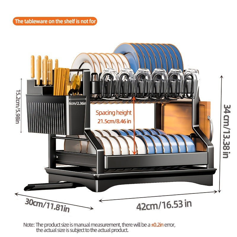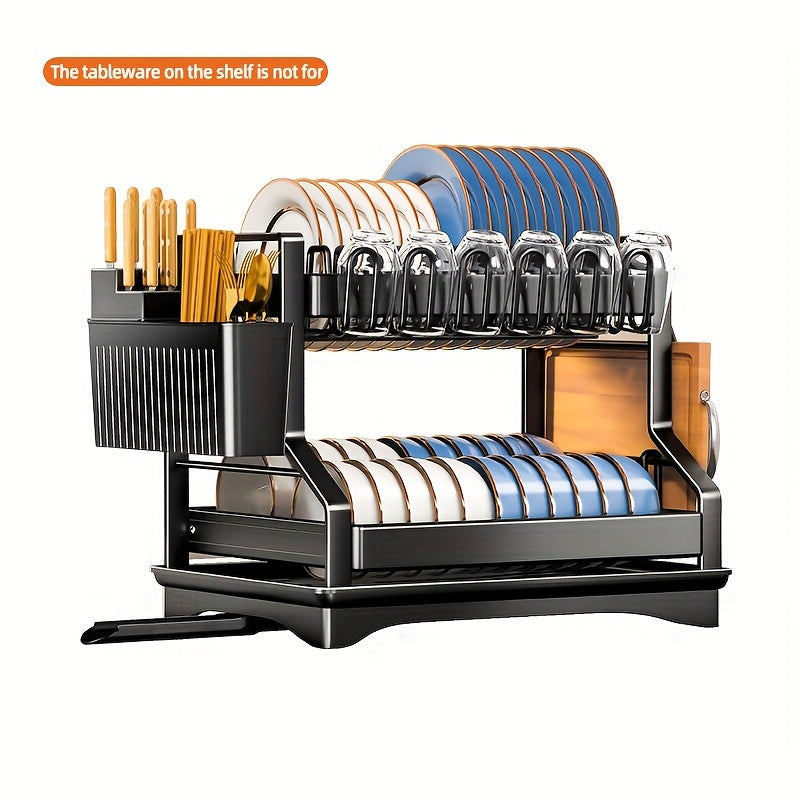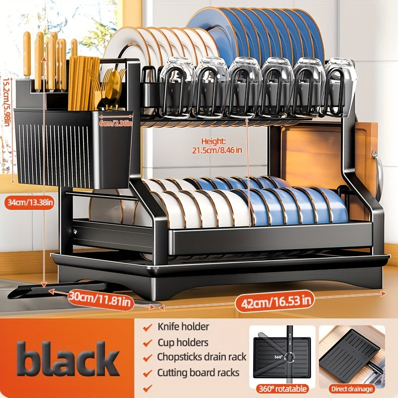 Двухслойная сушилка для посуды - поддерживайте порядок на кухне с помощью этой удобной стойки, которая включает место для палочек, водных стаканов и разделочных досок. Большая емкость для слива помогает сохранять посуду сухой и аккуратно хранящейся.