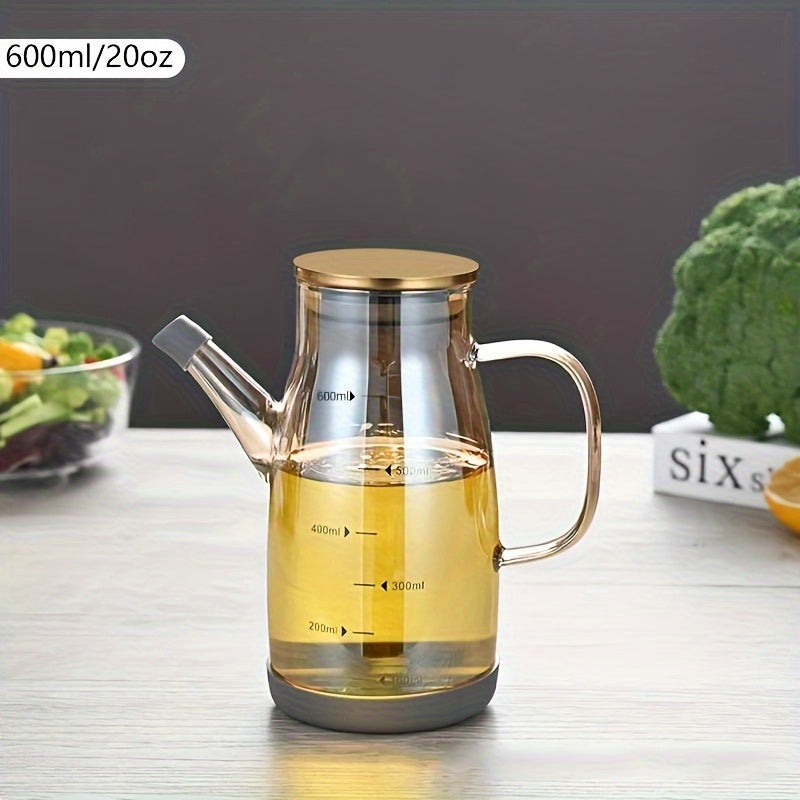Надежный стеклянный диспенсер для масла объемом 20 унций с крышкой и ручкой из нержавеющей стали - без BPA, отлично подходит для оливкового масла, уксуса, приправ - идеально для кухни, барбекю, кемпинга, пикников