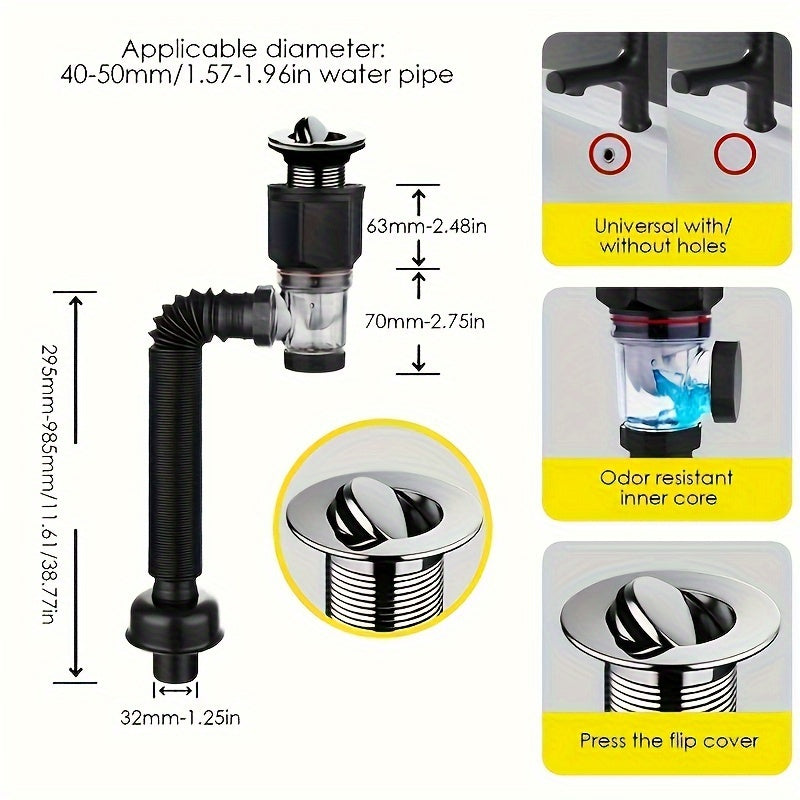 Прочная выдвижная труба для слива раковины из ПВХ и нержавеющей стали для ванной и кухни