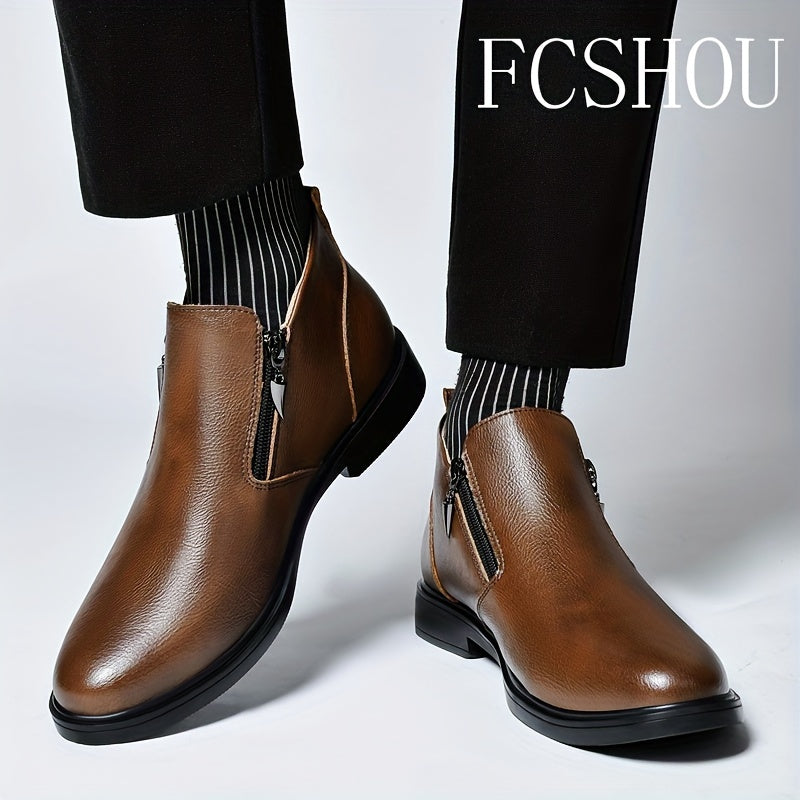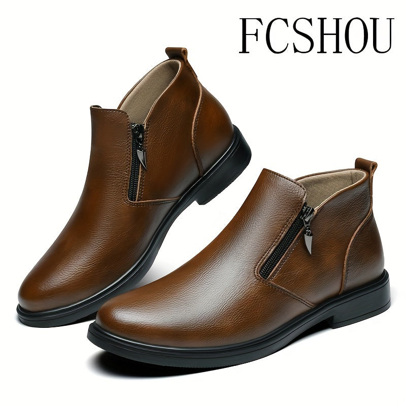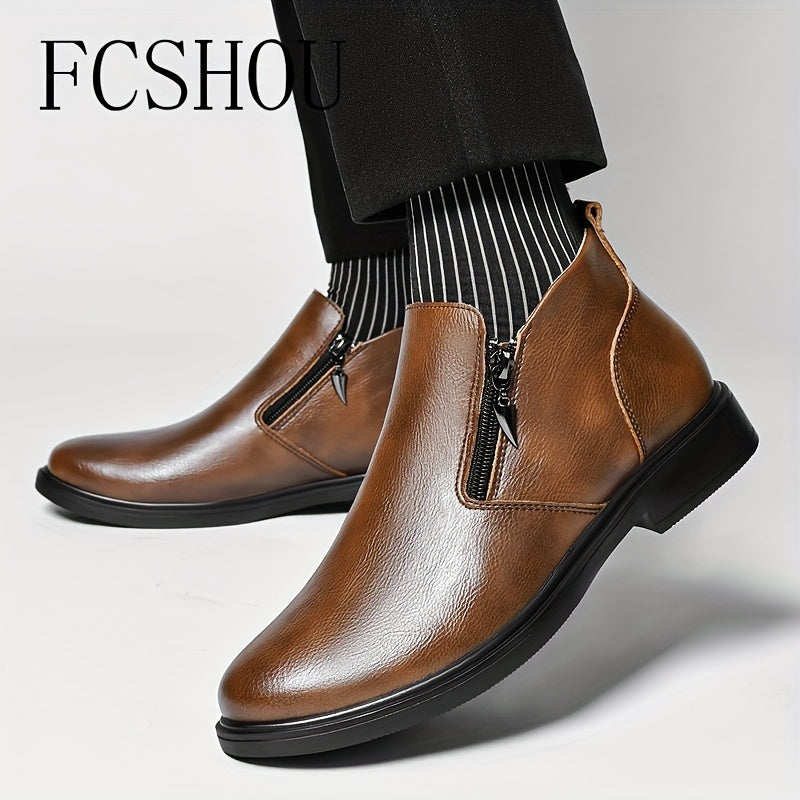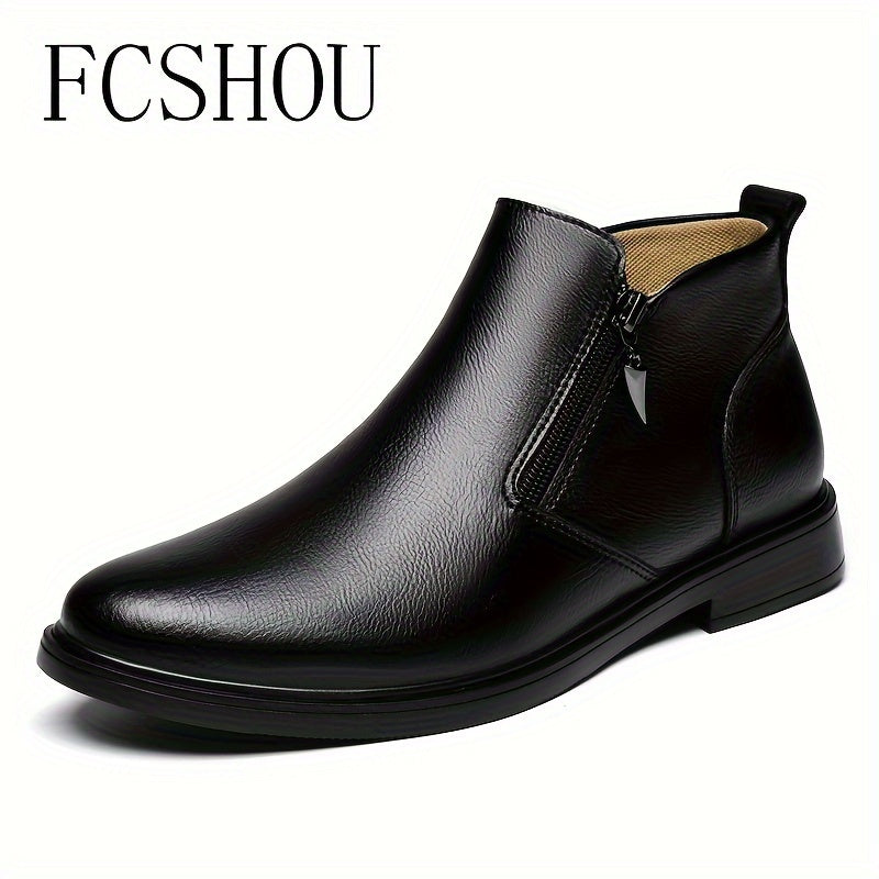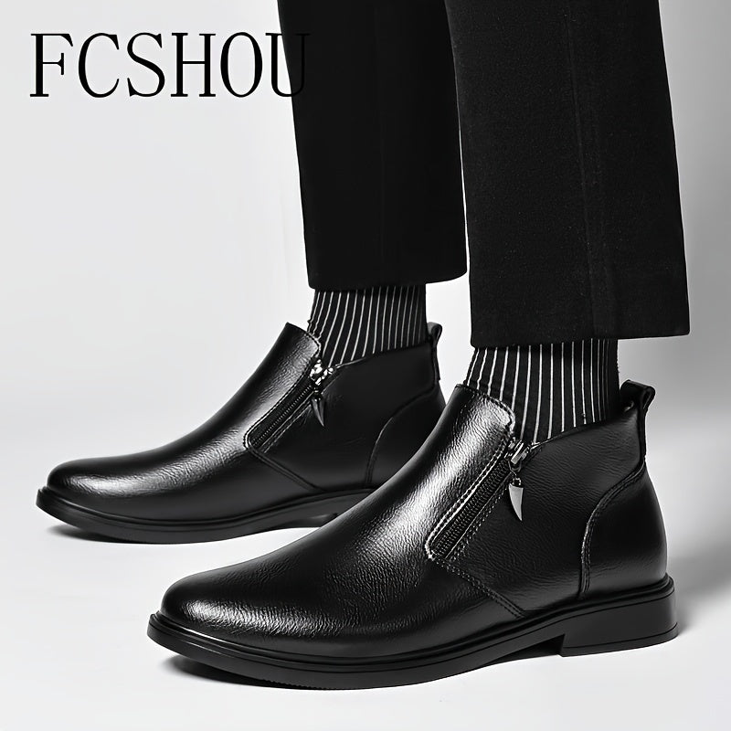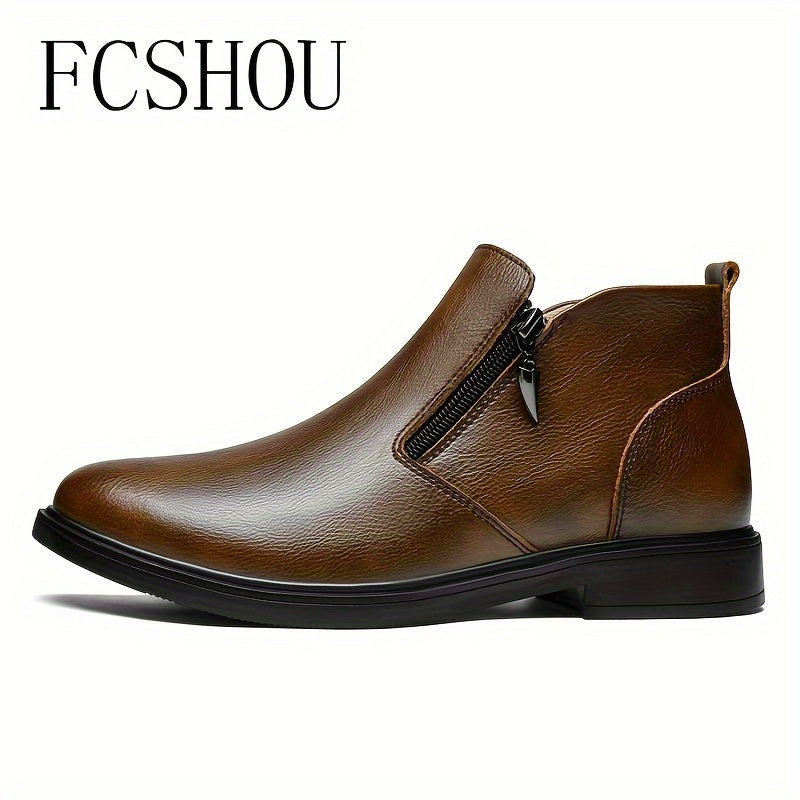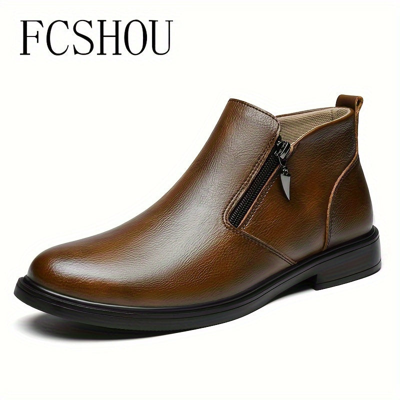 Мужские ботинки Chelsea на щиколотке из кожи с молнией, повседневные, противоскользящие, с квадратным носком