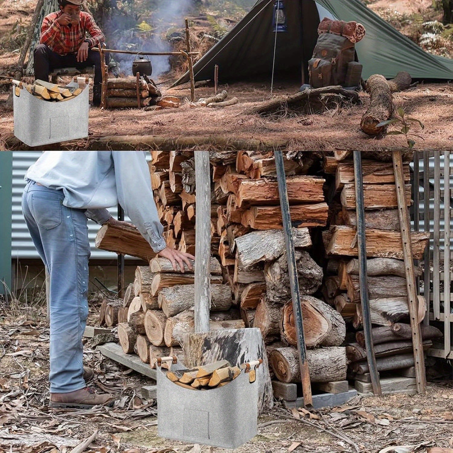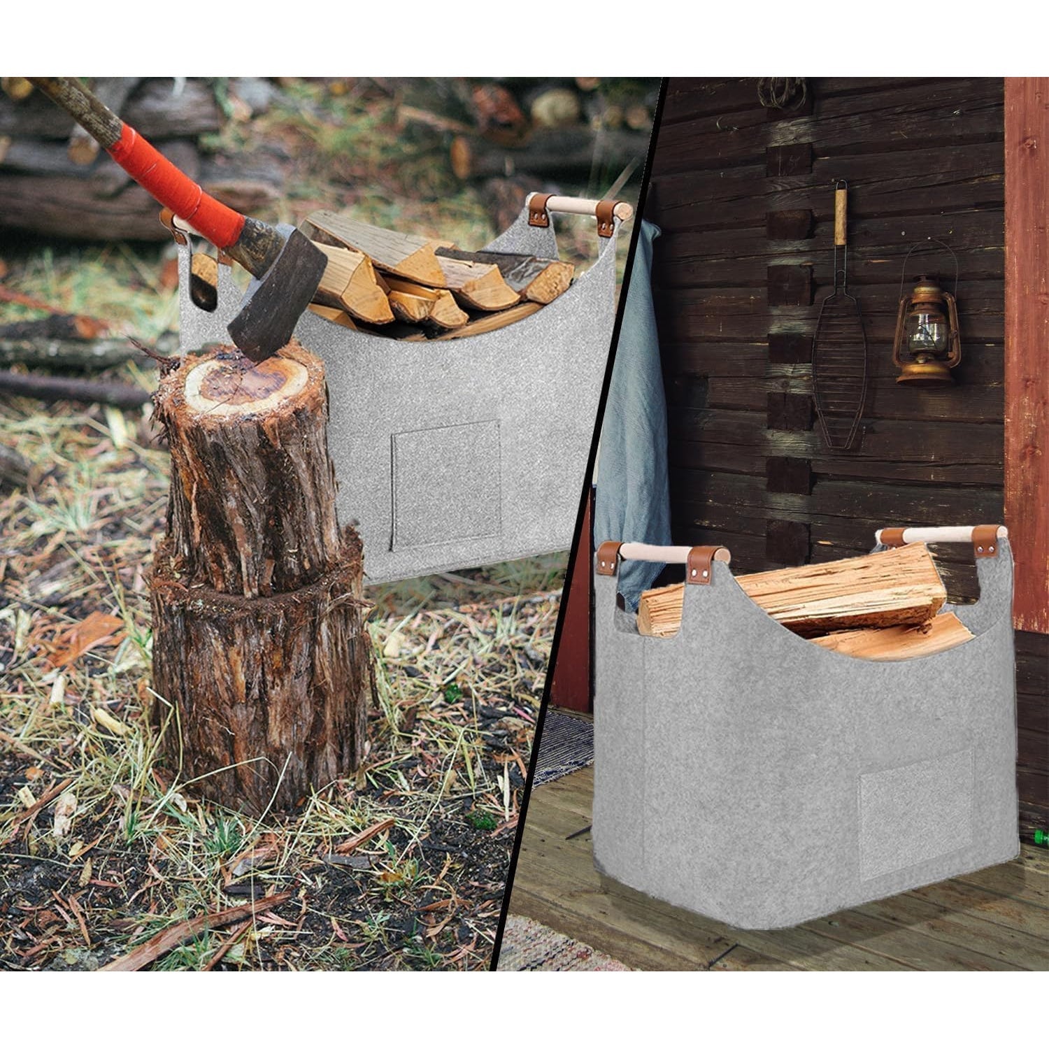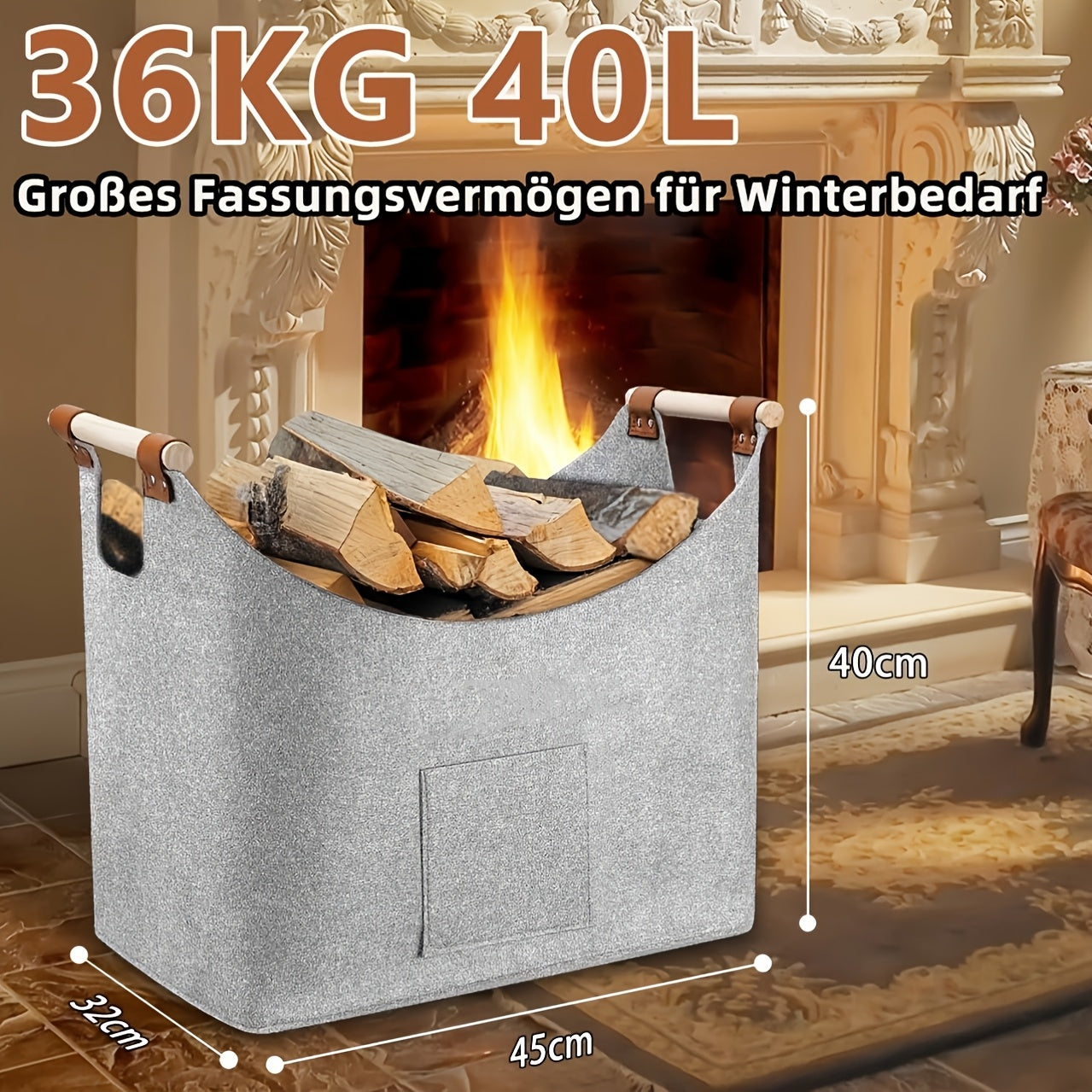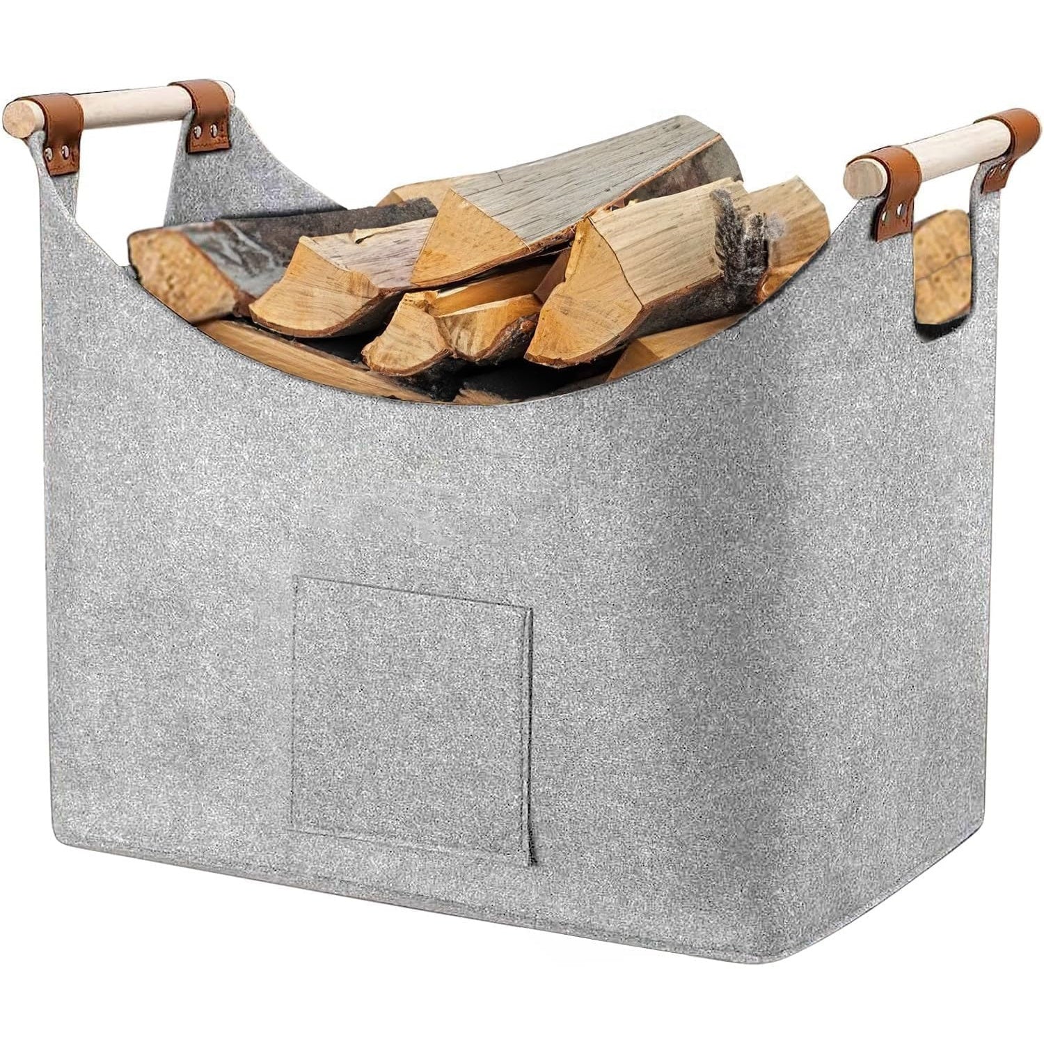 Большая серая корзина для дров из прочного ПЭТ-материала с ручками, очень толстое войлочное хранилище для дров, настенный держатель для дров для камина, емкость 36 кг/46 л, размеры 45x40x32 см