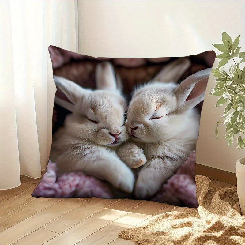 "Пасхальная горячая распродажа: наволочка с изображением спящего кролика из полиэстера: идеально подходит для праздников и домашнего декора, 45,72x45,72 см без наполнителя."