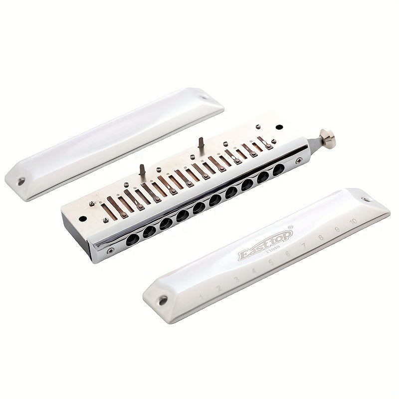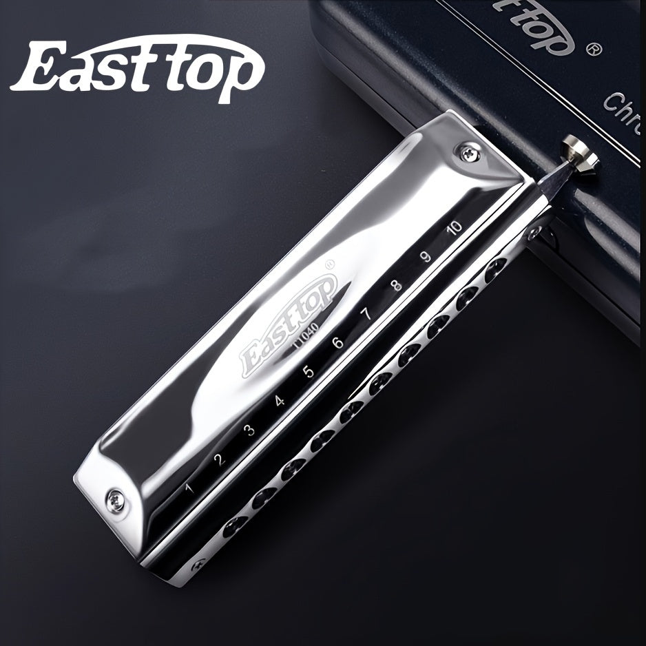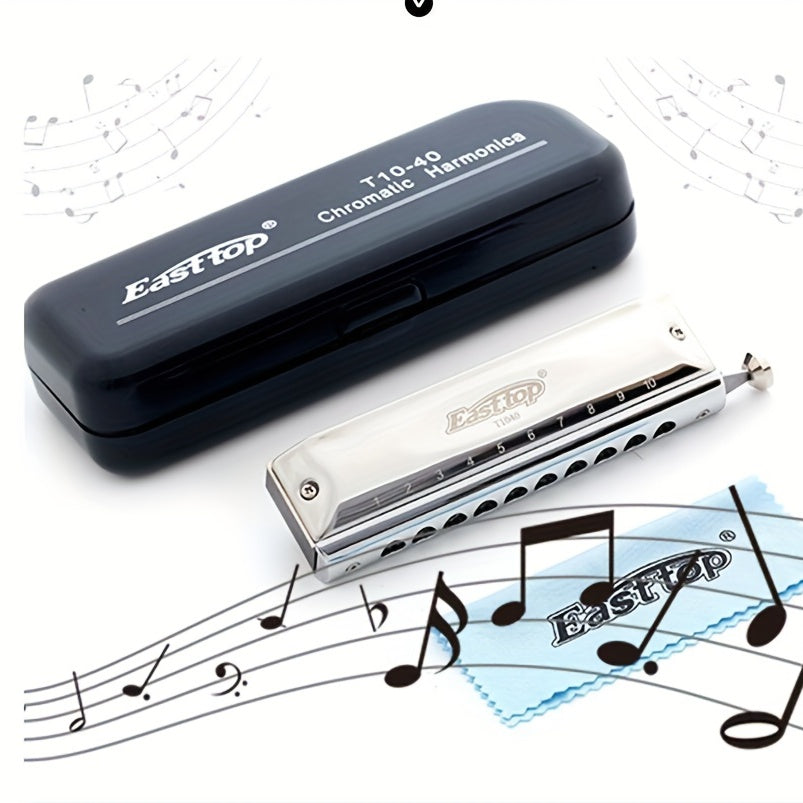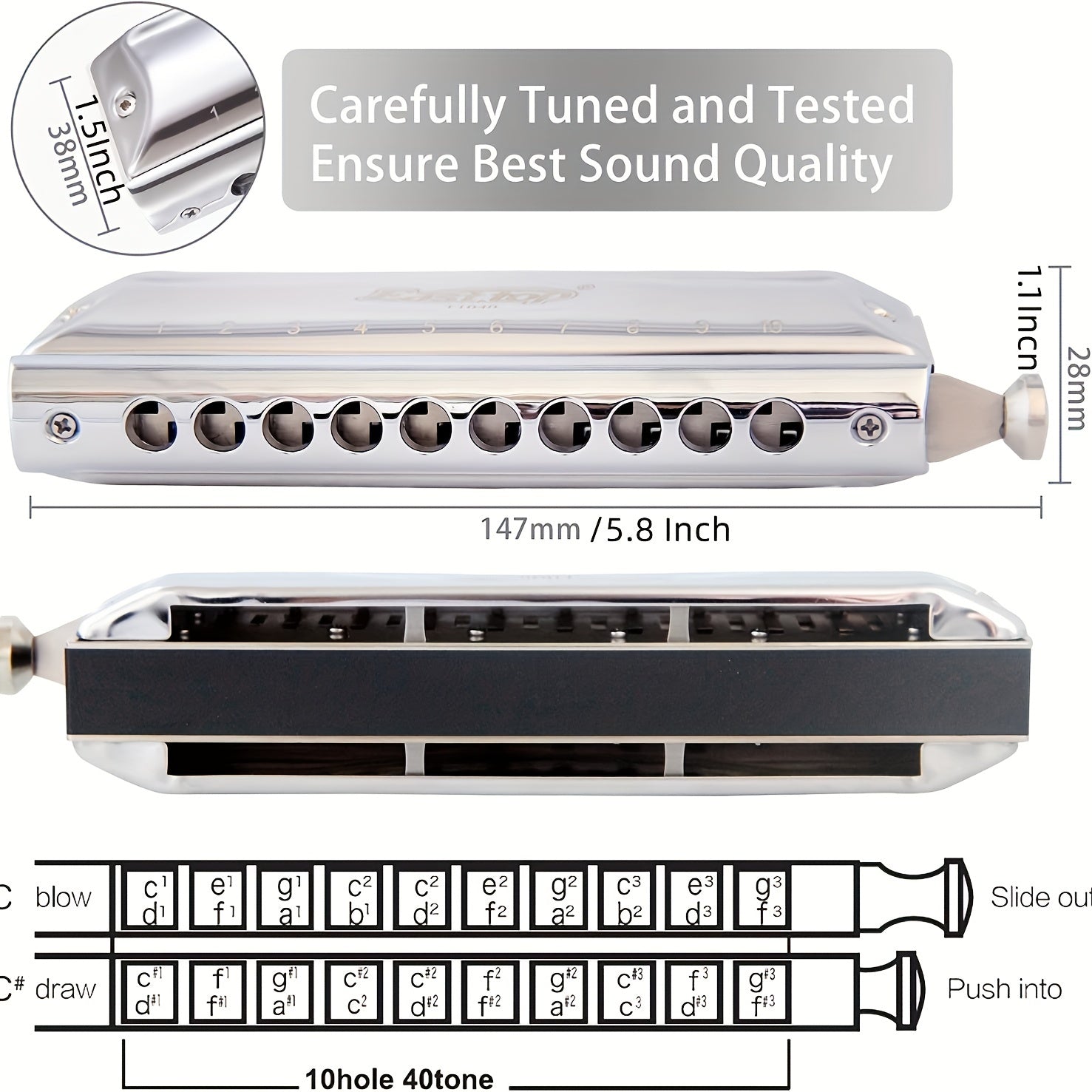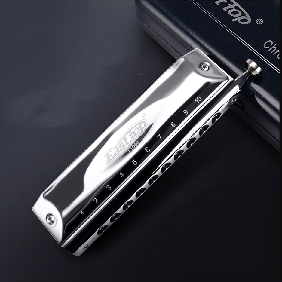 Хроматическая гармоника T10-40 профессиональная, 10 отверстий, 40 тонов, металлический полированный кейс