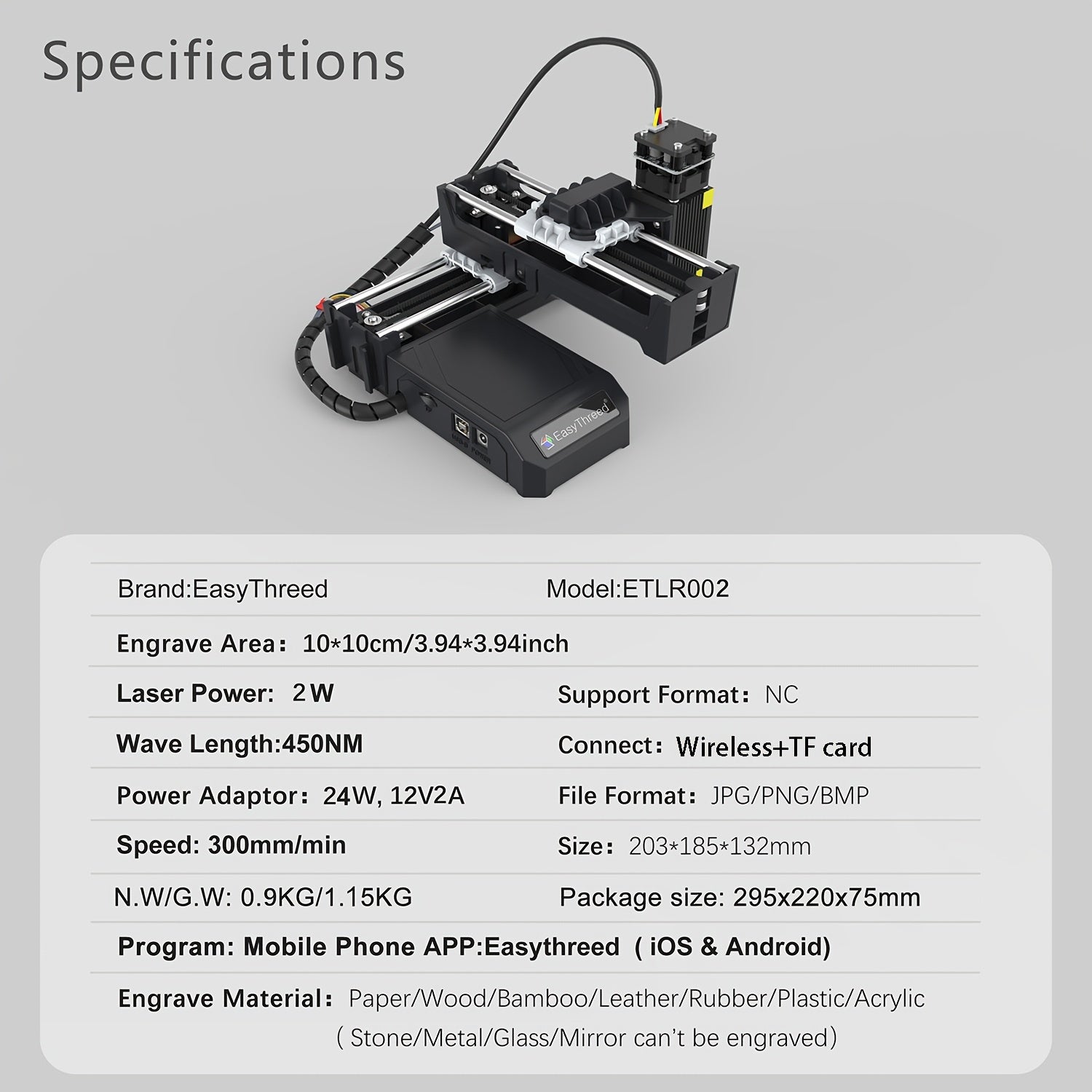 Лазерный гравер для начинающих, беспроводной, рабочая зона 100x100 мм, совместим с Android и iOS