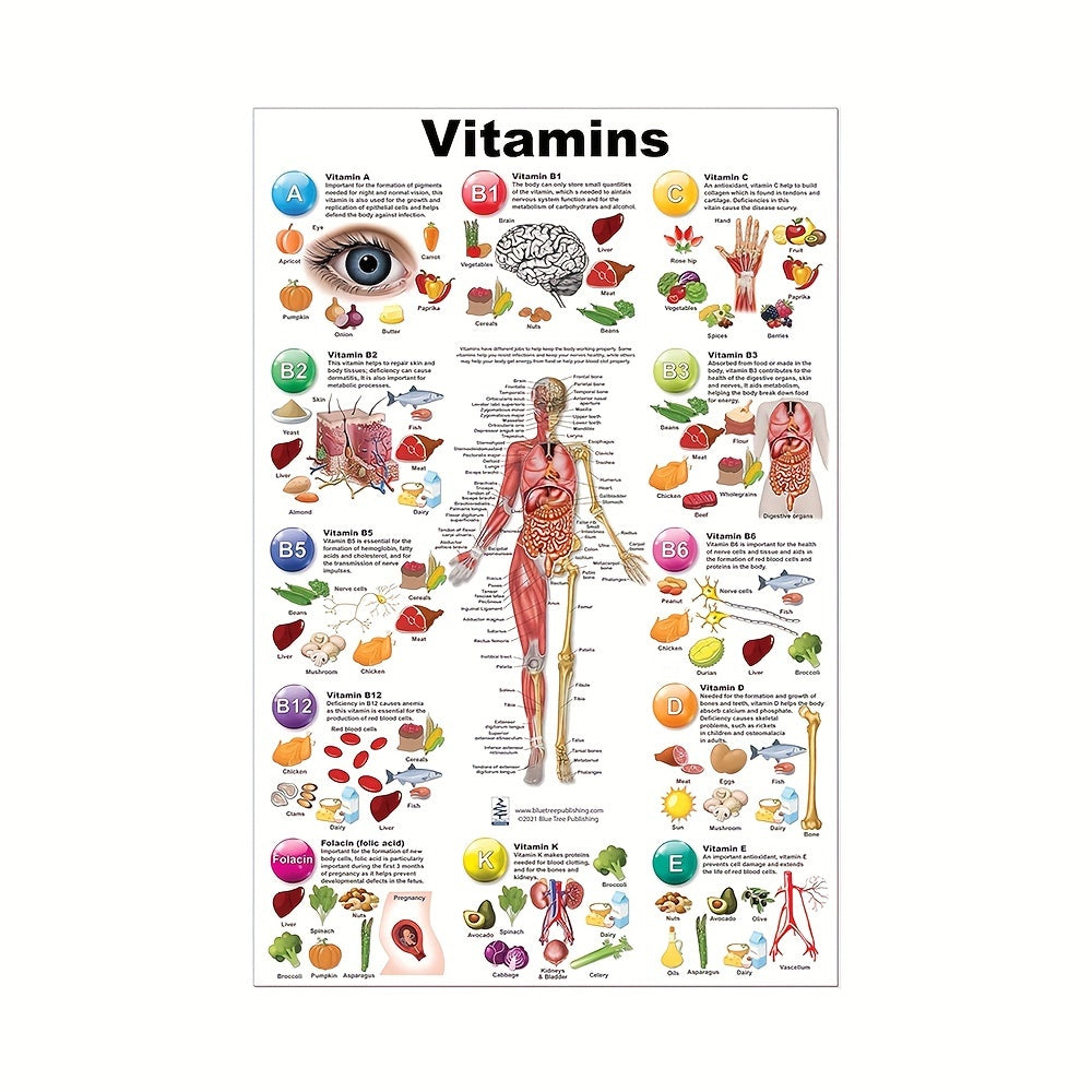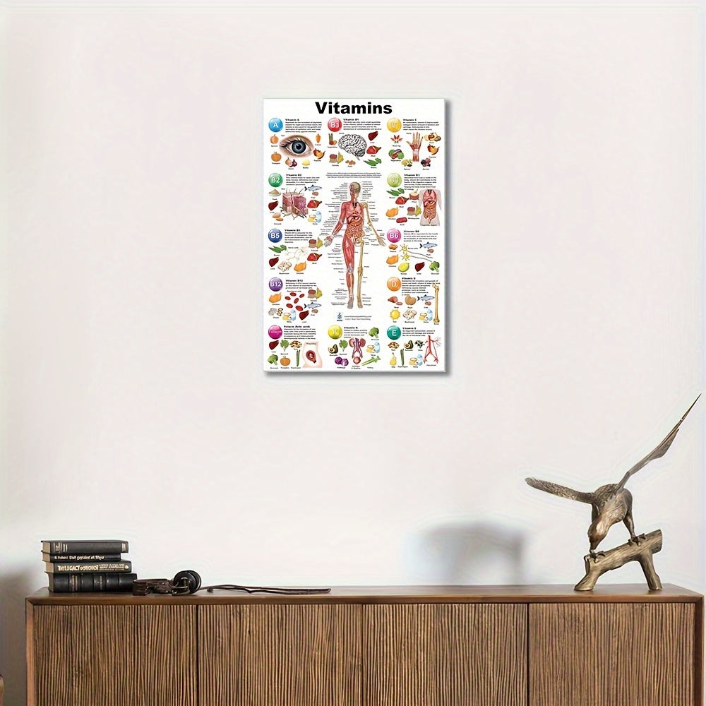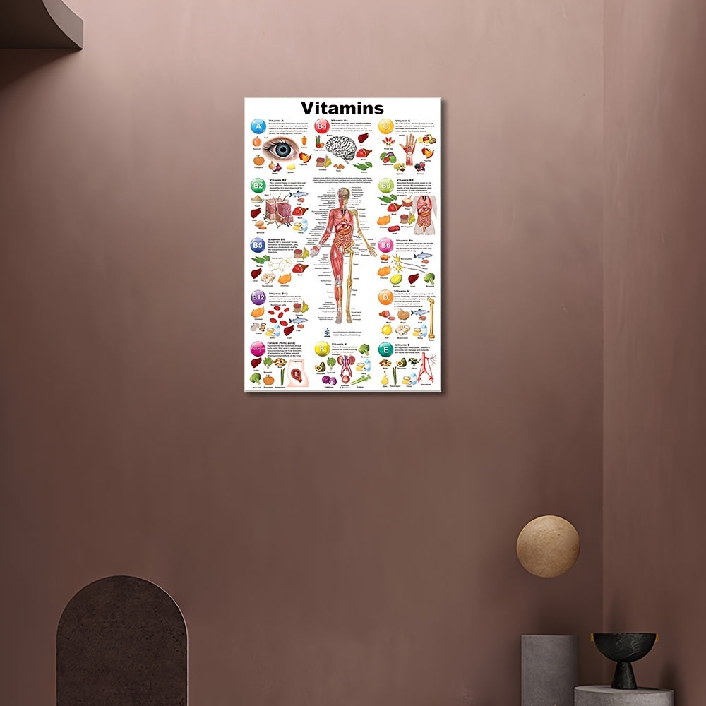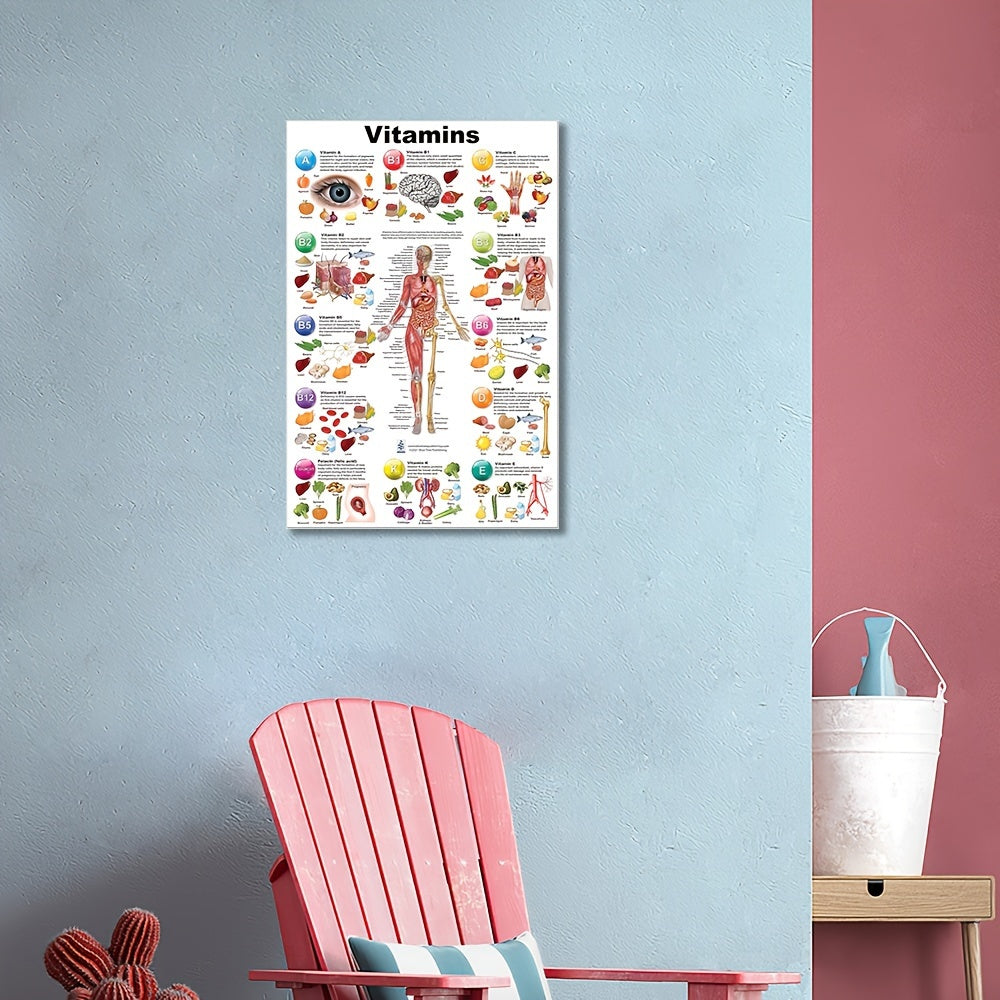 Образовательное холстовое настенное искусство без рамки с обозначенными витаминами и анатомией, отлично подходит для декора спальни и гостиной, идеальный подарок для любителей здоровья.