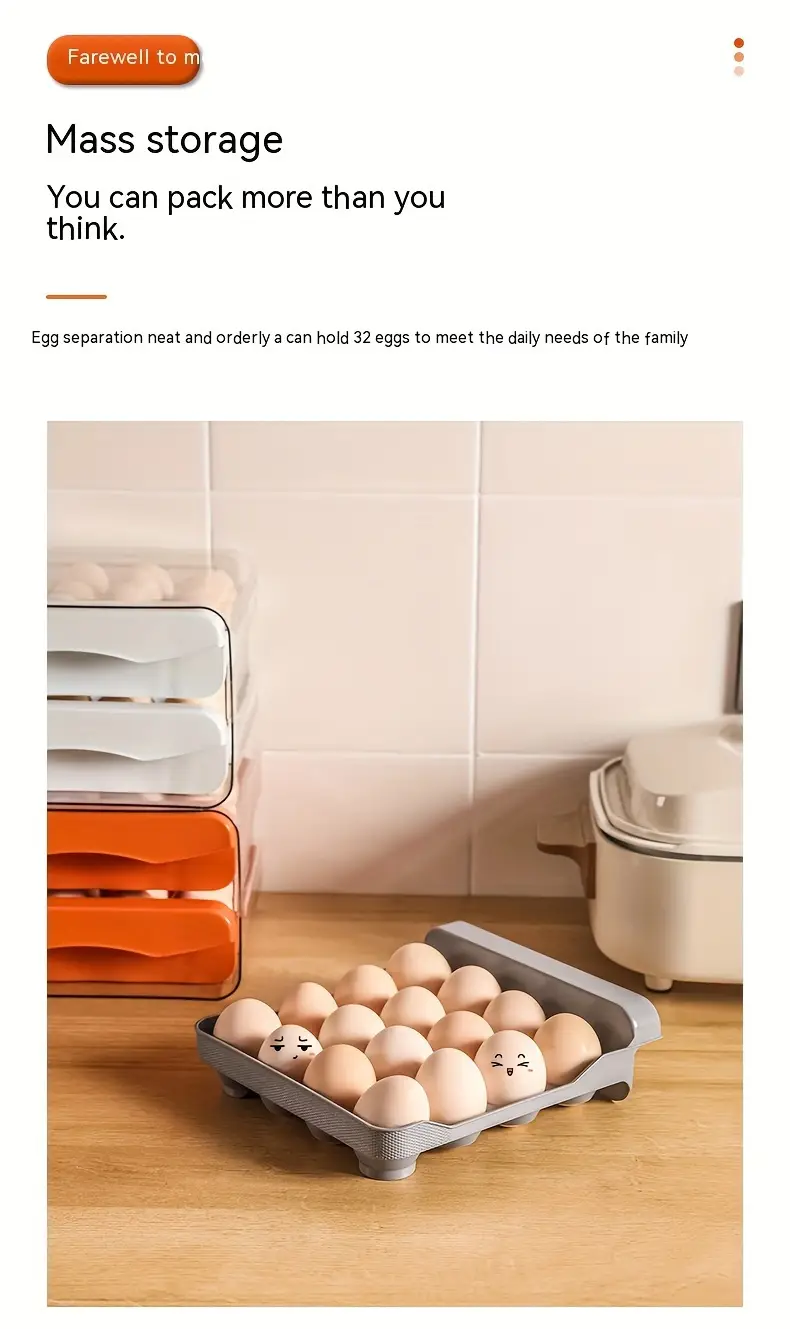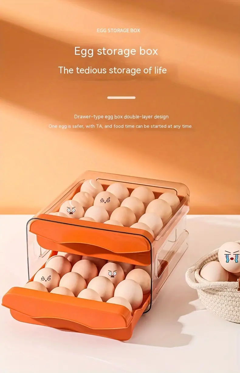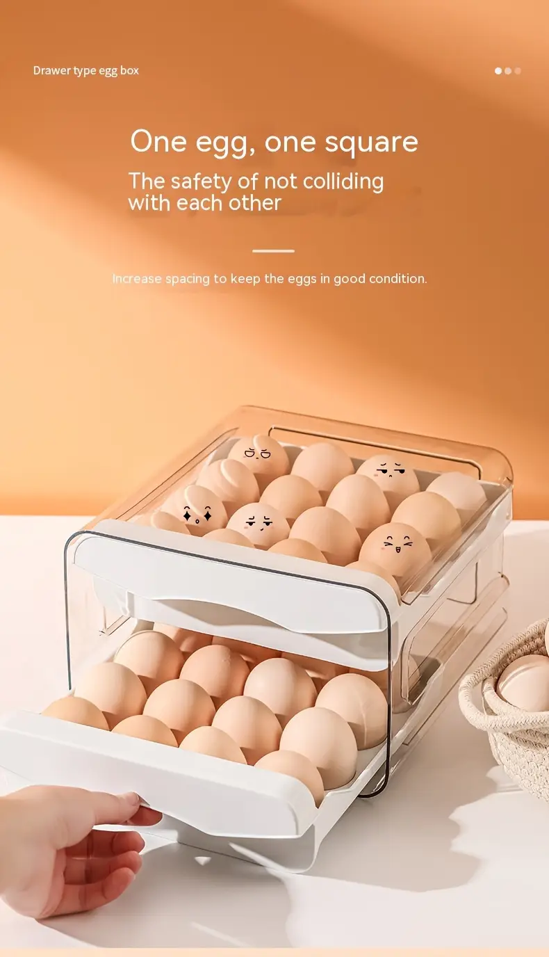 Органайзер для хранения яиц, пластиковый, с 32 ячейками, двухслойная полка для холодильника