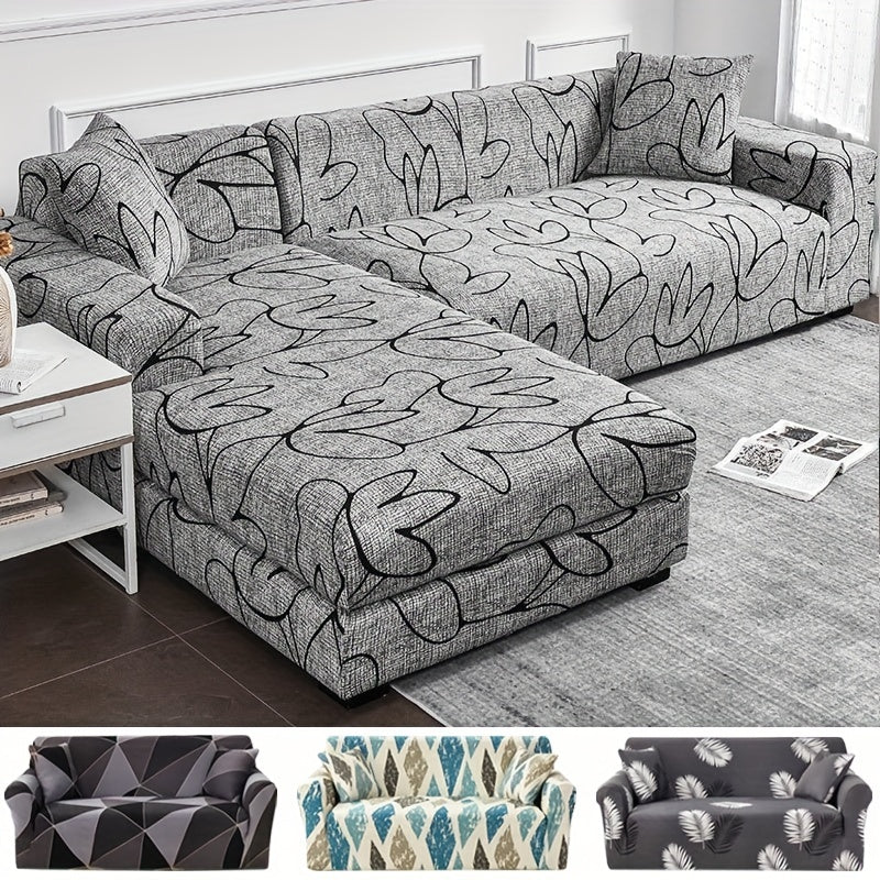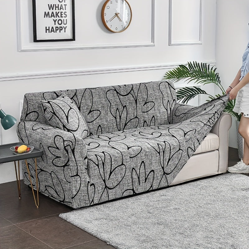 Эластичный чехол для дивана с принтом листьев для защиты от скольжения и декора в гостиной.